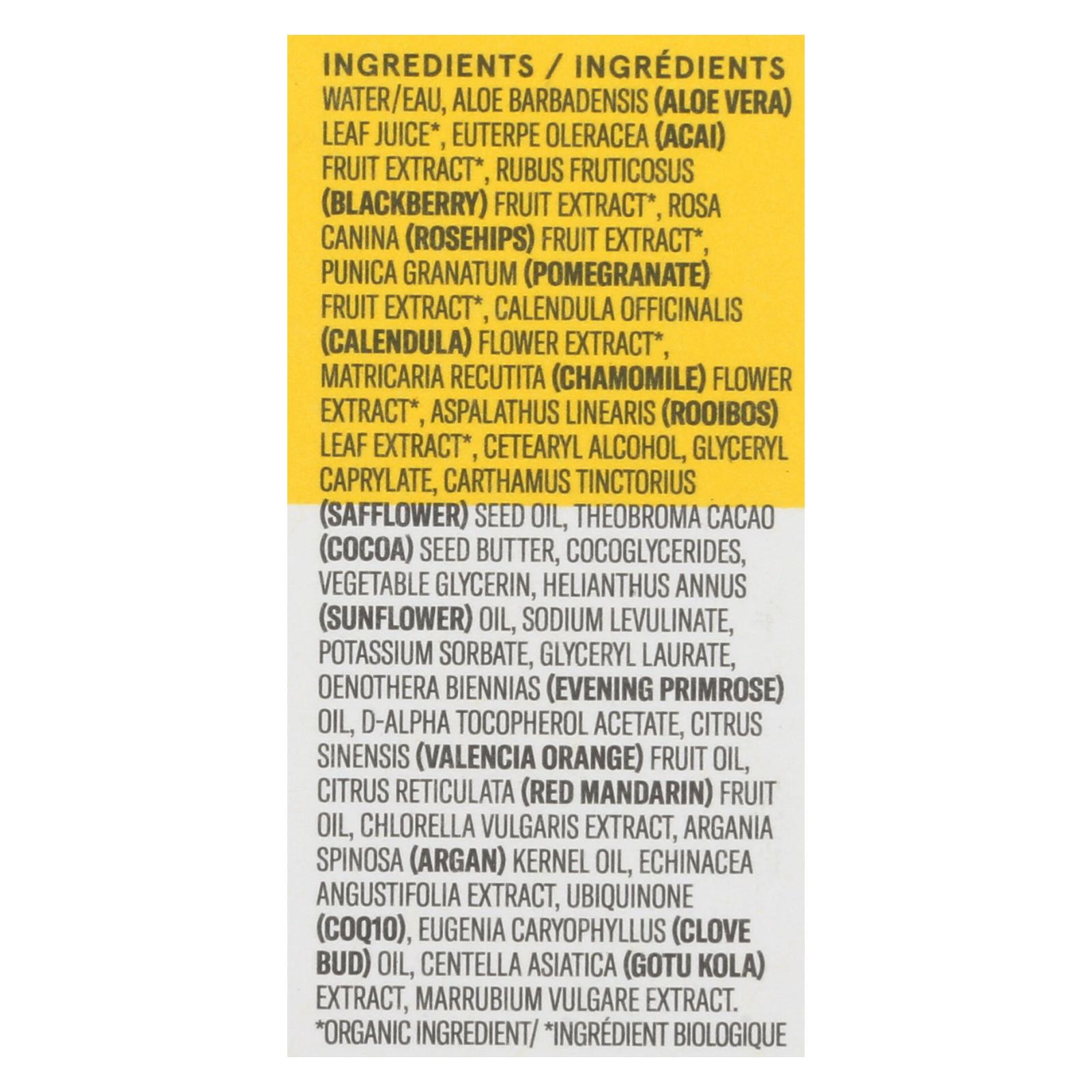 Water (Aqua), Carthamus tinctorius (Safflower) Oil, Cocos nucifera (Coconut) Oil, Theobroma cacao (Cocoa) Butter, Cetyl-Stearyl Alcohol, Glyceryl Stearate Citrate, Cetearyl Alcohol, Glyceryl Caprylate, Glycerin, Helianthus annuus (Sunflower), Citrus aurantium dulcis (Orange) Peel Oil, Glyceryl Laurate, Olea europaea (Olive) Fruit Oil, Citrus noblis (Mandarin Orange), Sodium Levulinate, D-alpha-tocopheryl Acetate, Evening Primrose Oil, Calendula officinalis Flower Extract, Tocopherol, Potassium Sorbate, Aloe barbadensis Leaf Juice, Eugenia.