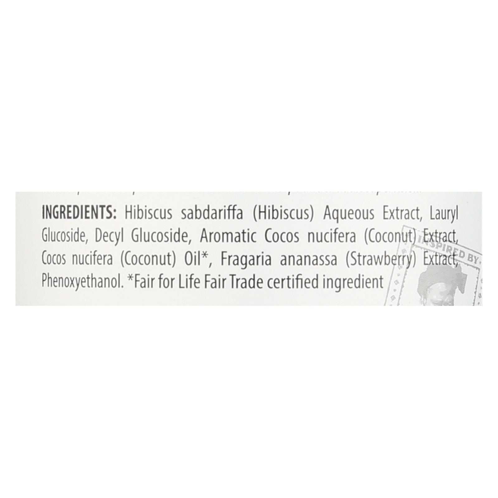 Hibiscus sabdariffa (hibiscus) aqueous extract, lauryl glucoside, decyl glucoside, cocos nucifera (coconut) extract, coconut oil, phenoxyethanol, fragrance.