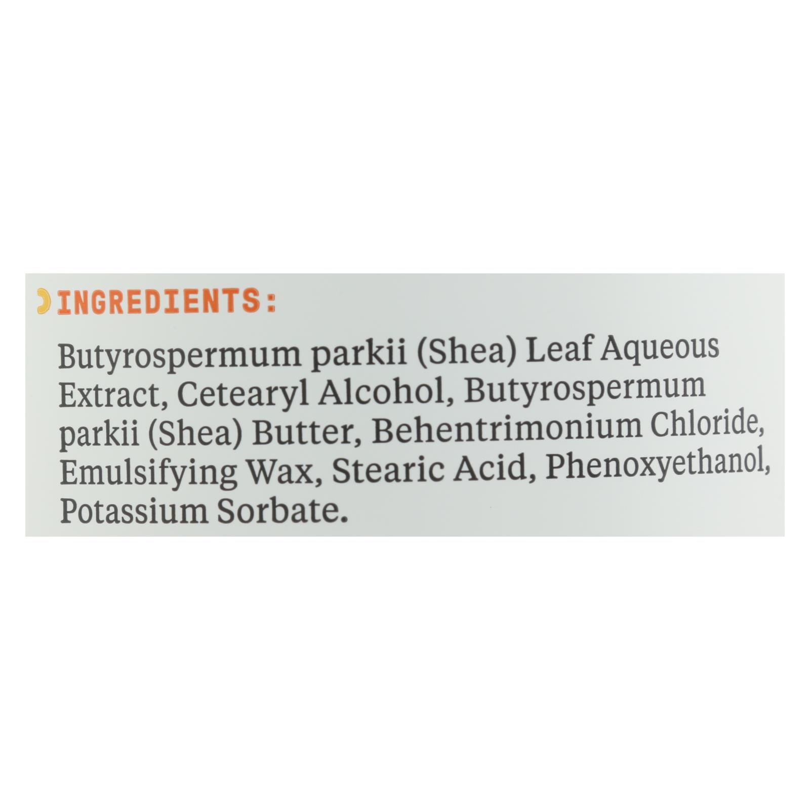 Butyrospermum parkii (shea) leaf aqueous extract, cetearyl alcohol, butyrospermum parkii (shea) butter, behentrimonium chloride, emulsifying wax, stearic acid, phenoxyethanol, potassium sorbate.