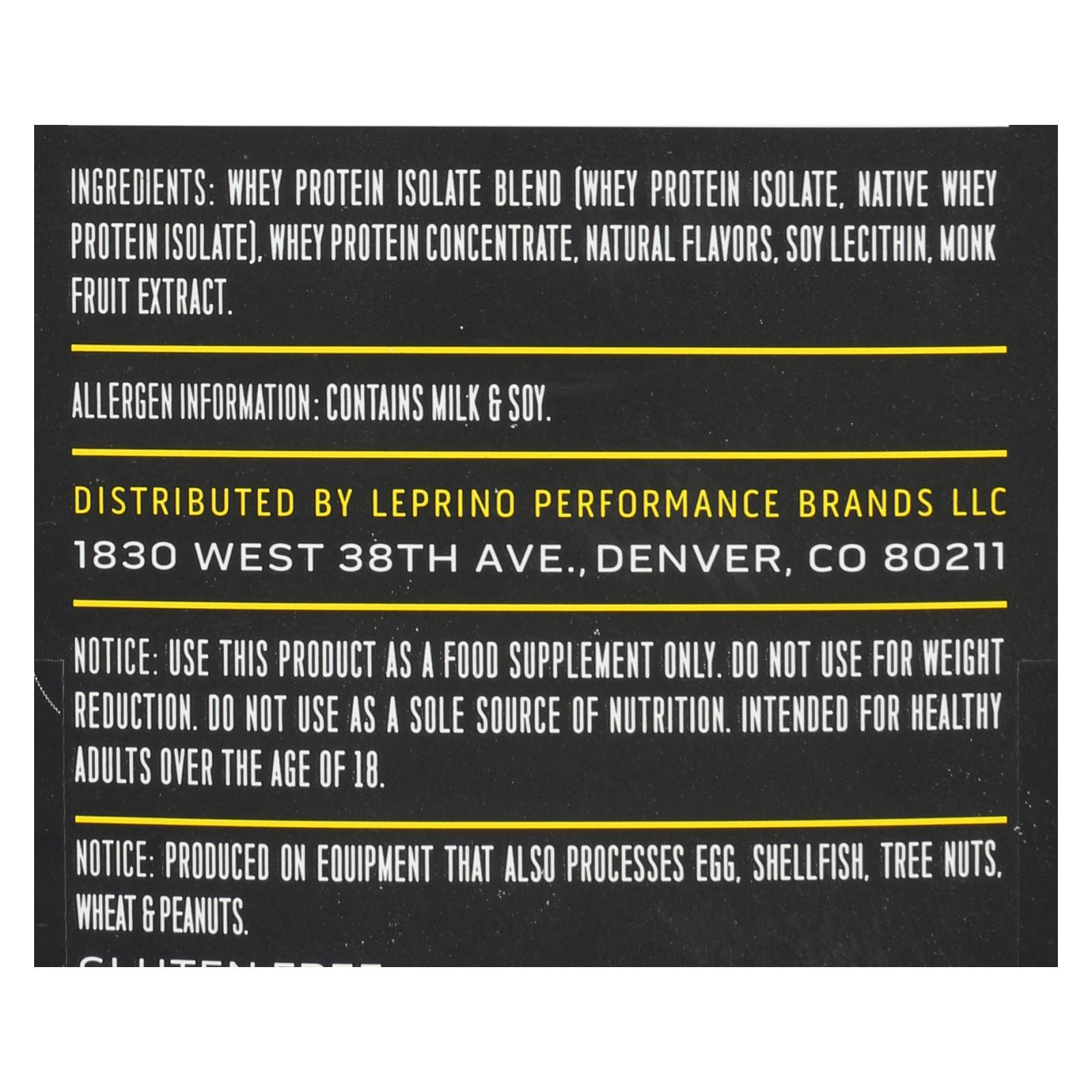 Whey protein isolate blend (native whey protein isolate, whey protein isolate, whey protein concentrate), natural flavors, sunflower lecithin, monk fruit extract.