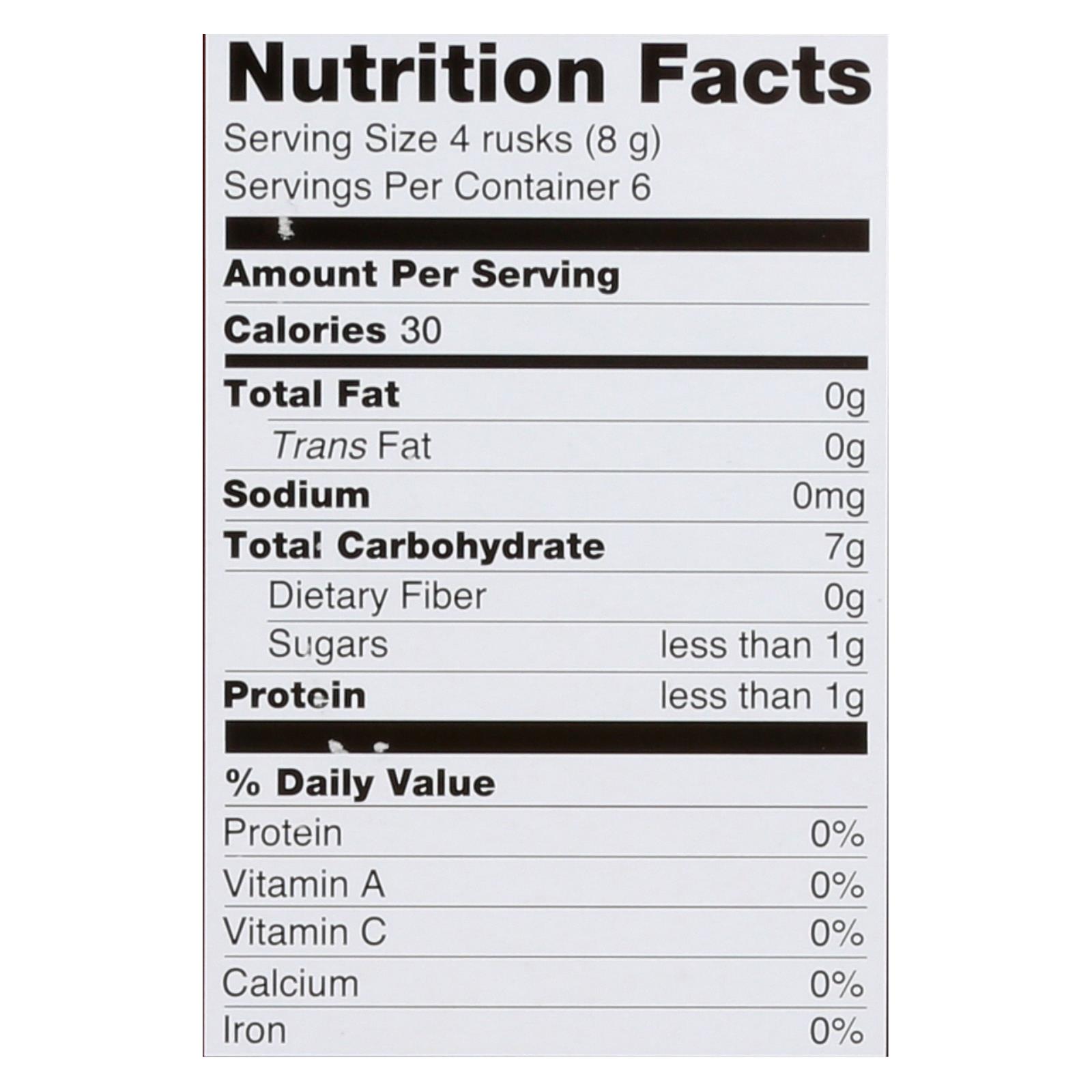 - Each box contains 24 rusks (1.76 oz per box); this case includes 6 boxes