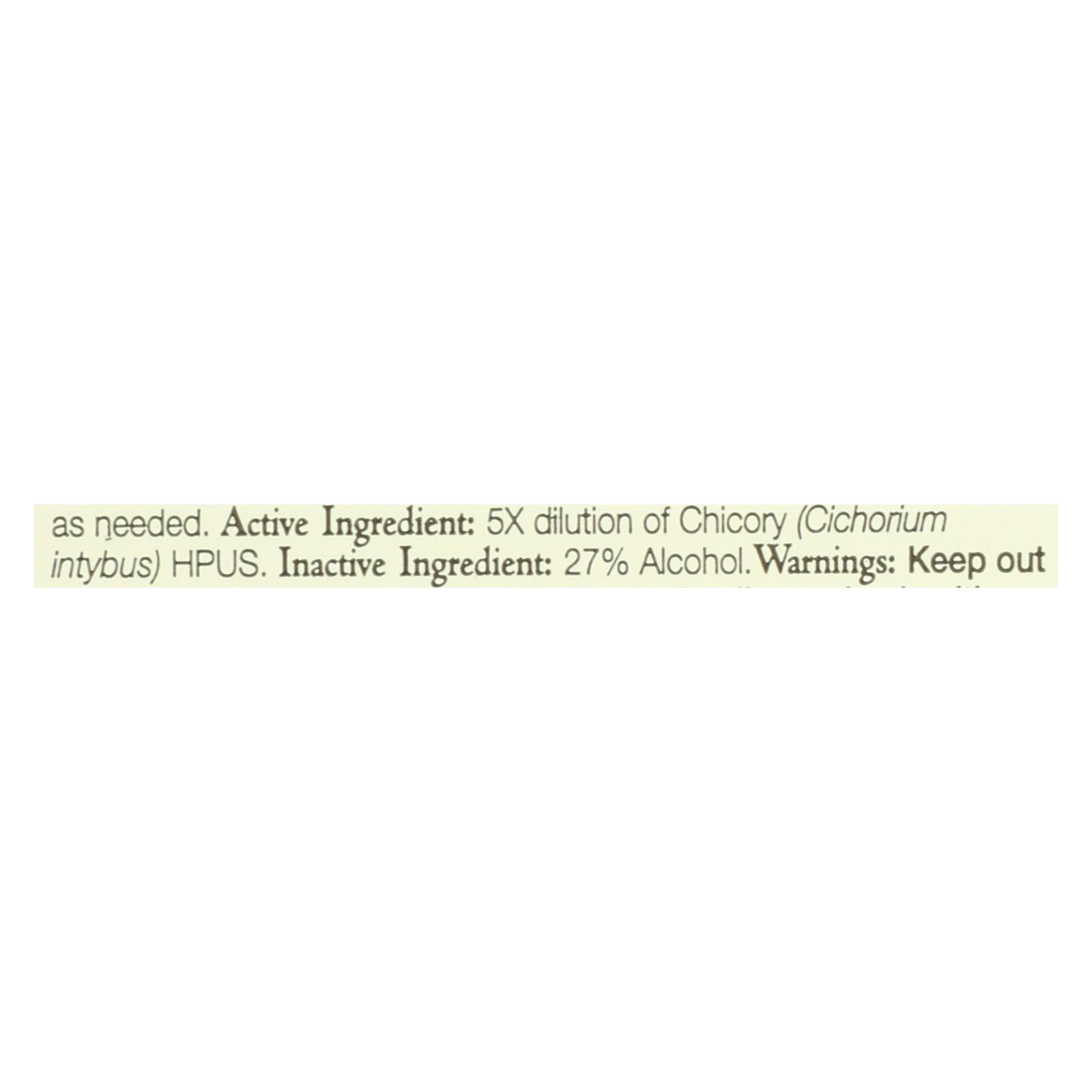 ingredients : 5x dilution of chicory;cichorium intybus;hpus. 27% alcohol