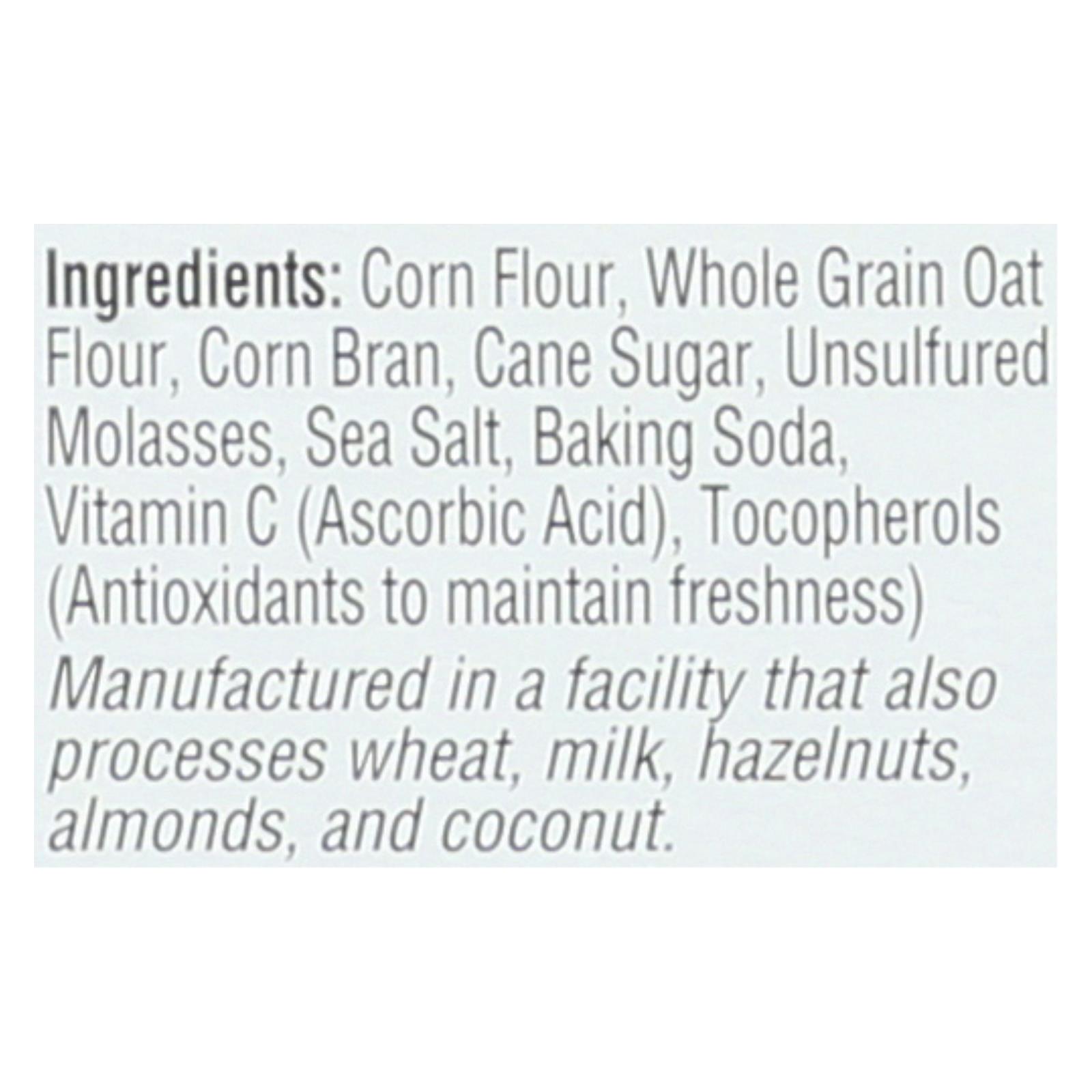 Corn flour, whole grain oat flour, cane sugar, oat fiber, unsulfured molasses, corn bran, sea salt, baking soda, vitamin C (ascorbic acid), tocopherols (antioxidants to maintain freshness).
