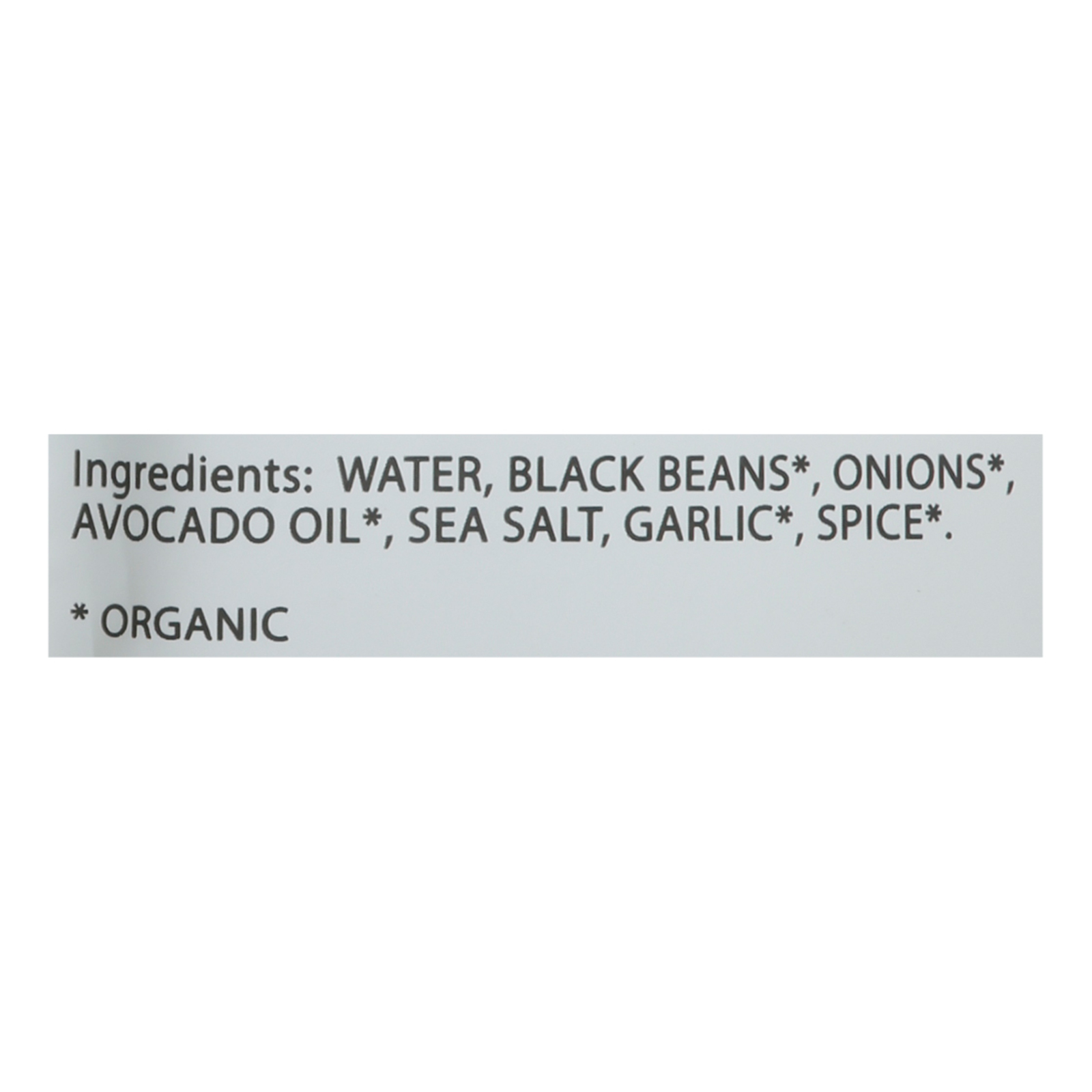 Black beans (95%+ organic). For a complete list of ingredients, please refer to the product packaging.