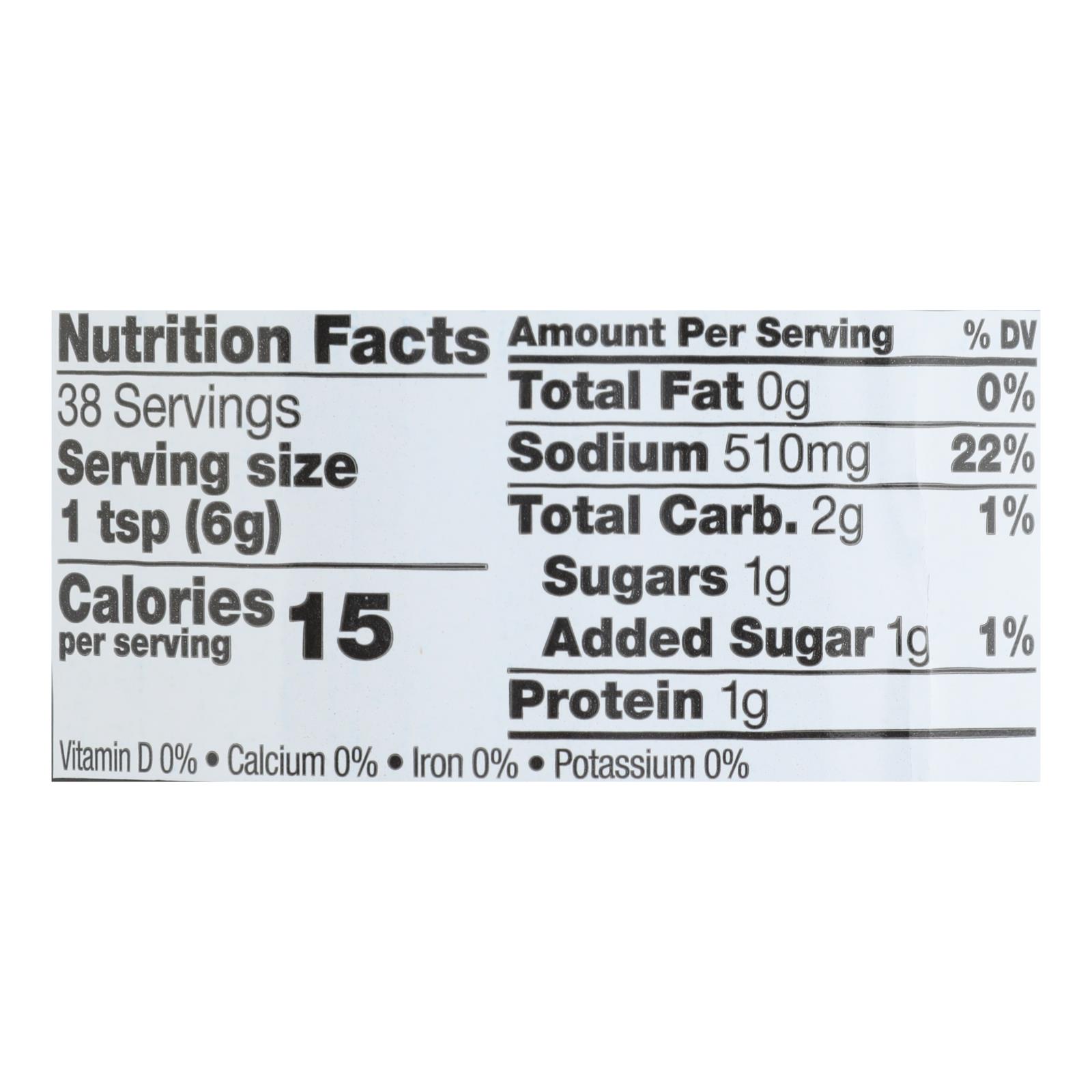 - Serving size: 1 teaspoon (10 calories per serving)