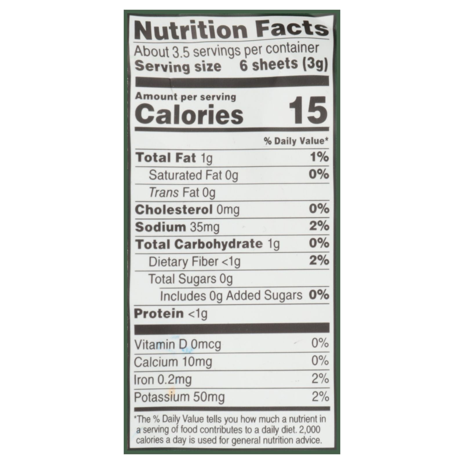 - Serving size: 0.35 oz per pack