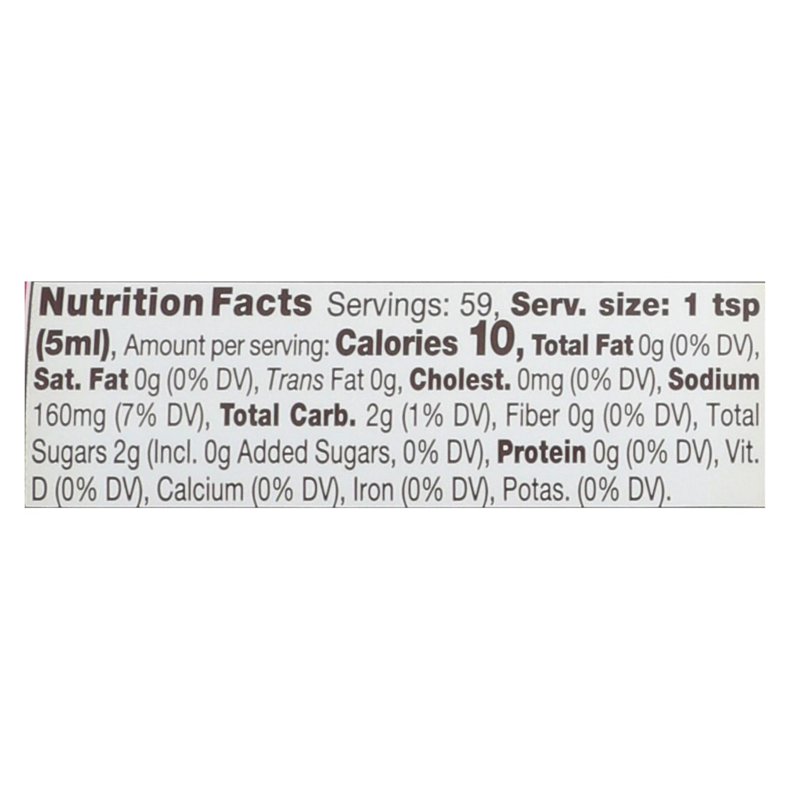 Big tree farms organic coconut aminos, soy sauce alternative, is a delicious soy free, gluten-free all purpose seasoning. This product is rich with essential amino acids, low glycemic and contains almost half the sodium of soy sauce. Big tree farms organic coconut aminos, soy sauce alternative is a tangy sauce great for use in salad dressings, dips, on sushi and popcorn, or even as a tasty meat or poultry marinade. This product is organic, kosher, non-gmo, and contains no gluten. Every bottle of big tree farms organic coconut aminos, soy sauce alternative contains 10 fl. Oz. Of product.