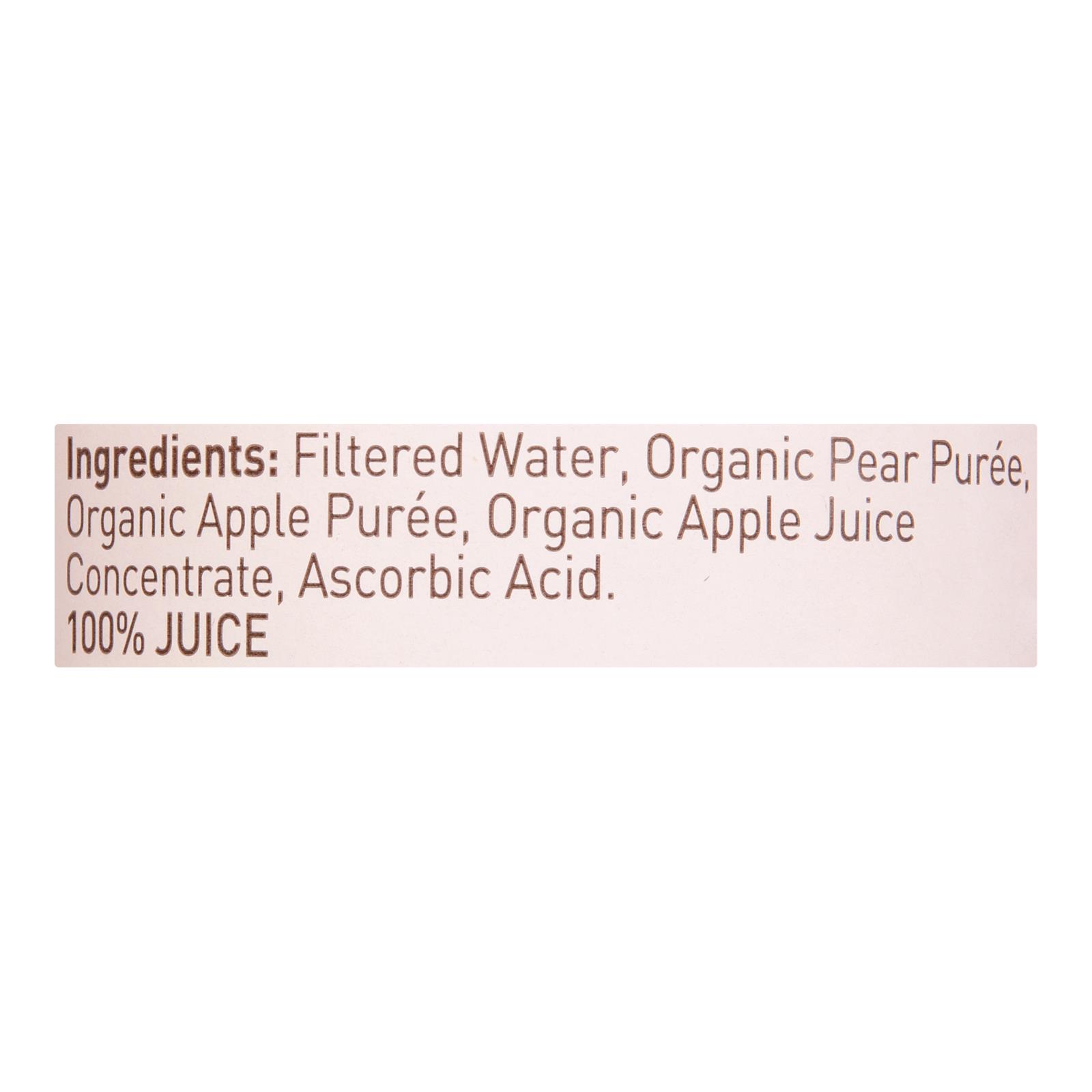 Filtered water, organic pear puree, organic apple puree, organic apple juice concentrate, ascorbic acid.