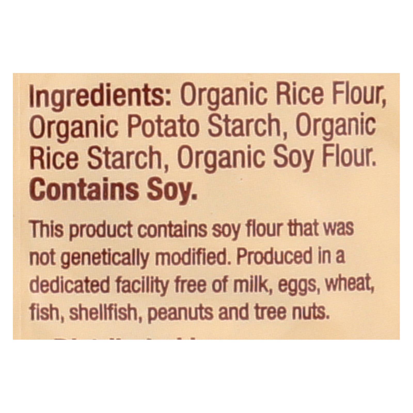 Organic brown rice flour, organic white rice flour, organic yellow lentil flour.