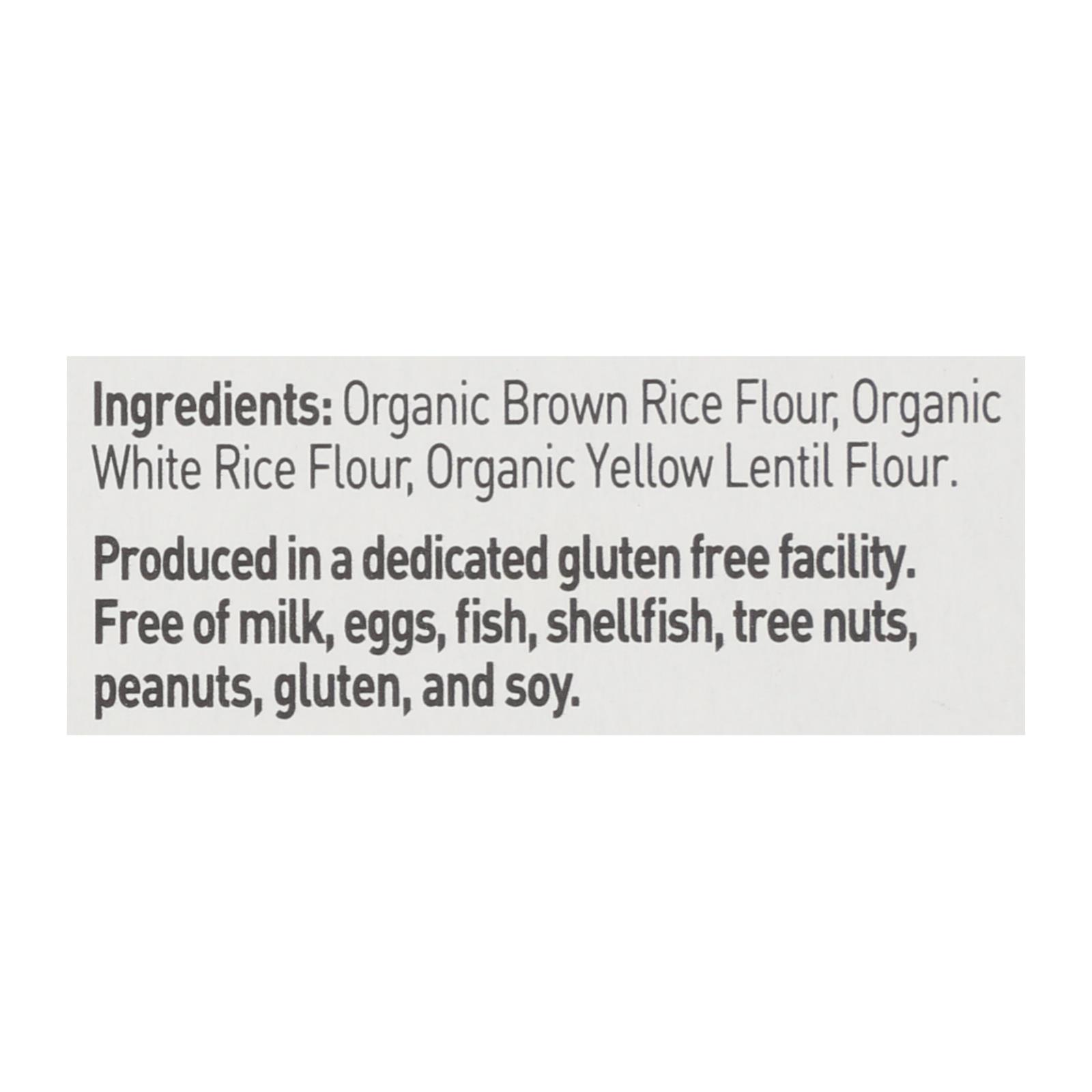 ingredients : organic brown rice flour;organic white rice flour;organic yellow lentil flour
