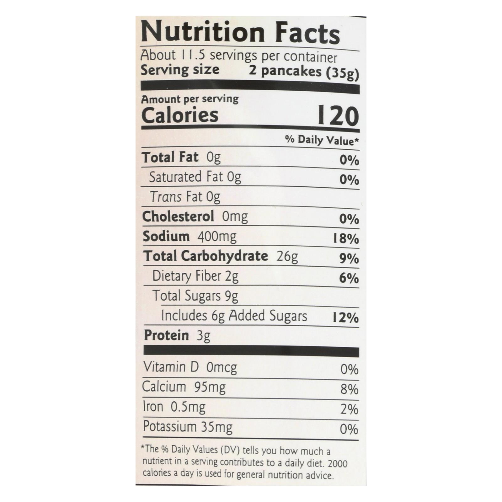 - Makes 23 medium pancakes per 14 oz bag
