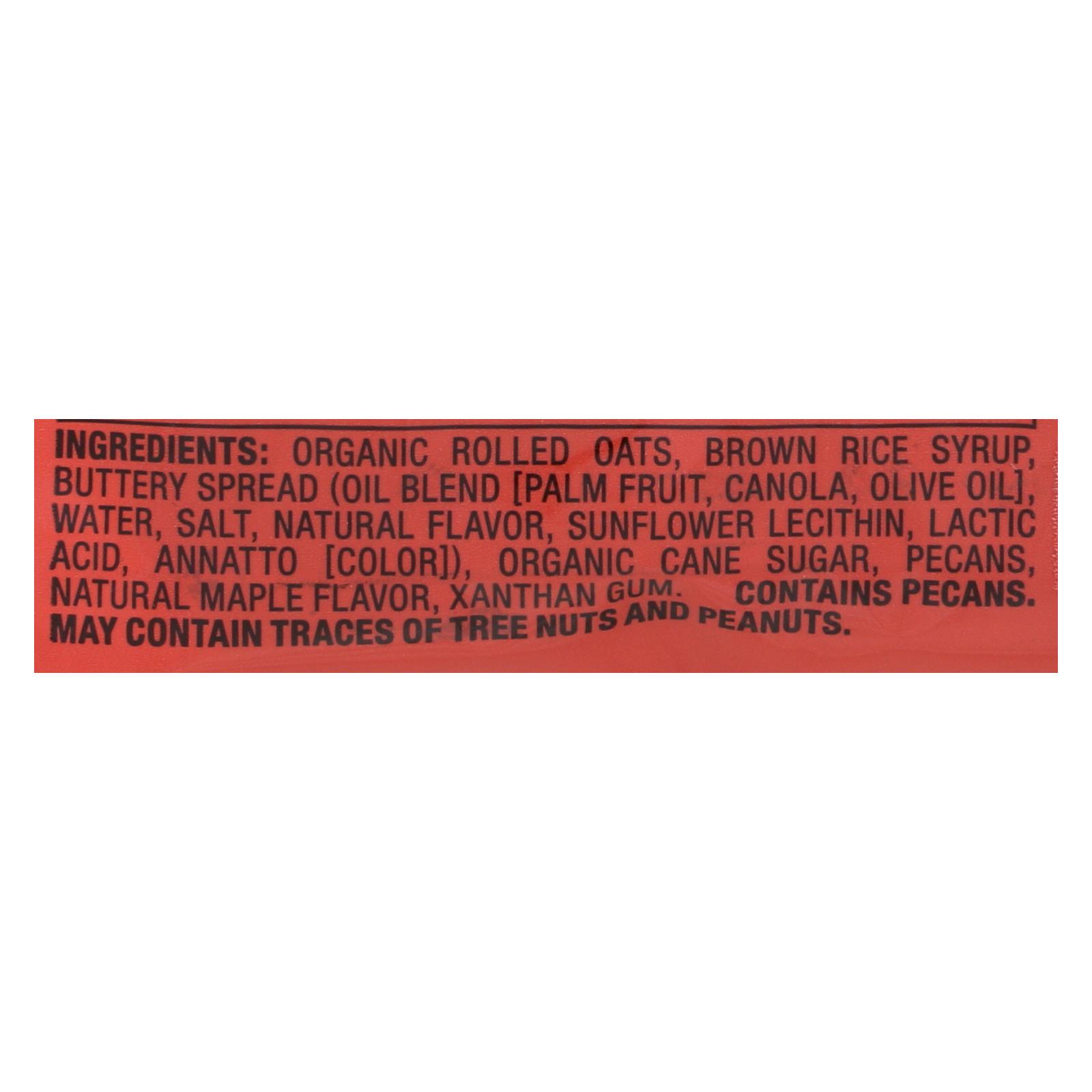 These bars feature organic whole grain rolled oats, a classic source of sustained energy, and pecans, commonly enjoyed for their rich, nutty flavor and satisfying crunch. Sweetened naturally with brown rice syrup and organic cane sugar, each bar is finished with a touch of natural maple flavor for a comforting, home-baked taste.