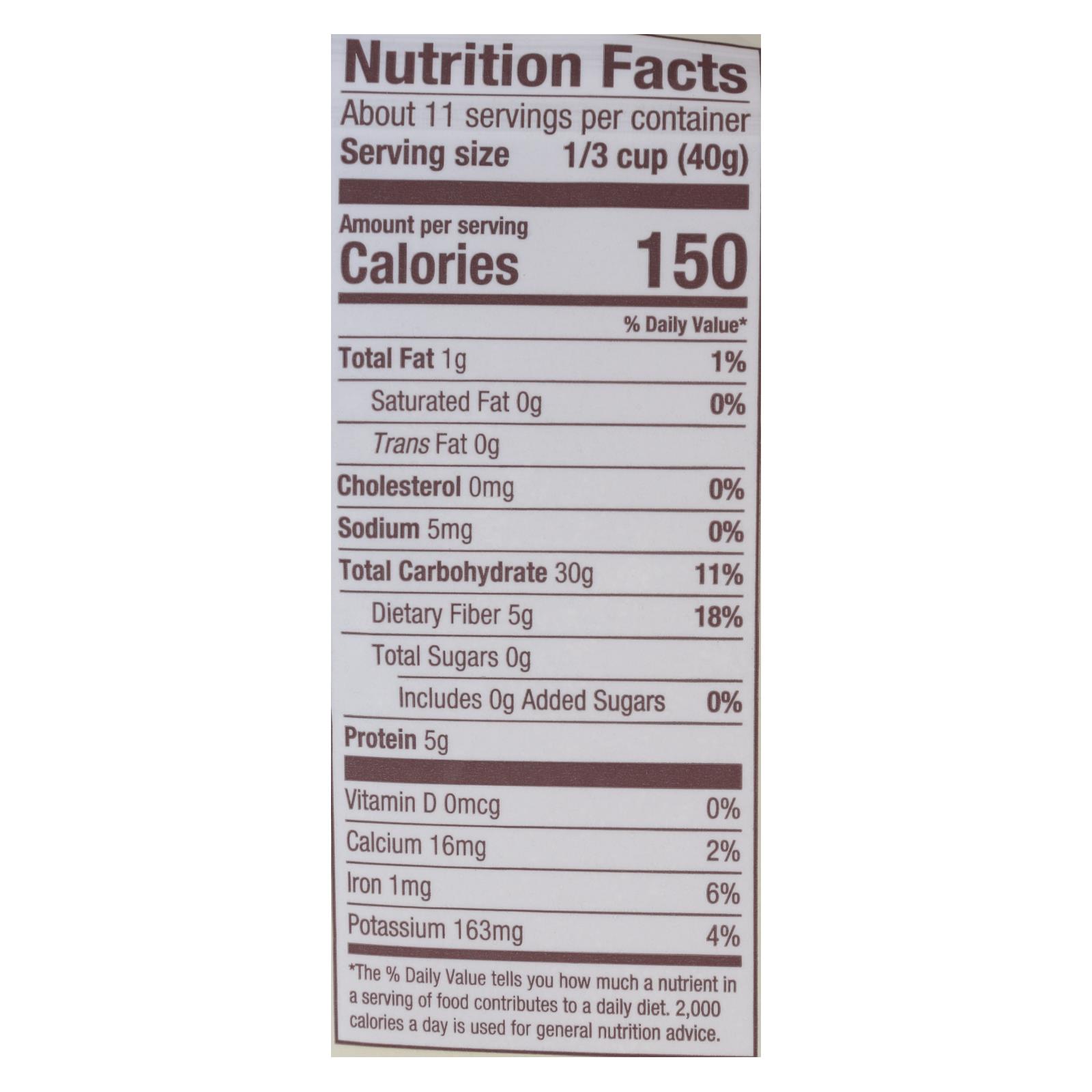 Whole grain. Good source of fiber. Non-gmo project verified. Nongmoproject.org. An employee-owned company. To your good health. Freshly milled from a blend of whole wheat, rye, barley, oats, triticale and flaxseed meal, our 5 grain hot cereal is a good source of fiber and a satisfying start to your day. Add to baked goods instead of oats for extra flavor! you can see your quality. Dear friends, i look forward to a delicious bowl of hot cereal every morning – to my mind, there’s no better or tastier way to start the day. That’s why we offer dozens of wholesome, satisfying hot cereals at bob’s red mill, including our 5 grain hot cereal. You’ll find an extraordinary variety of flavors, textures and nutrients to enjoy. I invite you to embark on your own whole grain adventure! to your good health, -bob moore. Bobsredmill.com. For more information and recipes, visit bobsredmill.com. Resealable package.