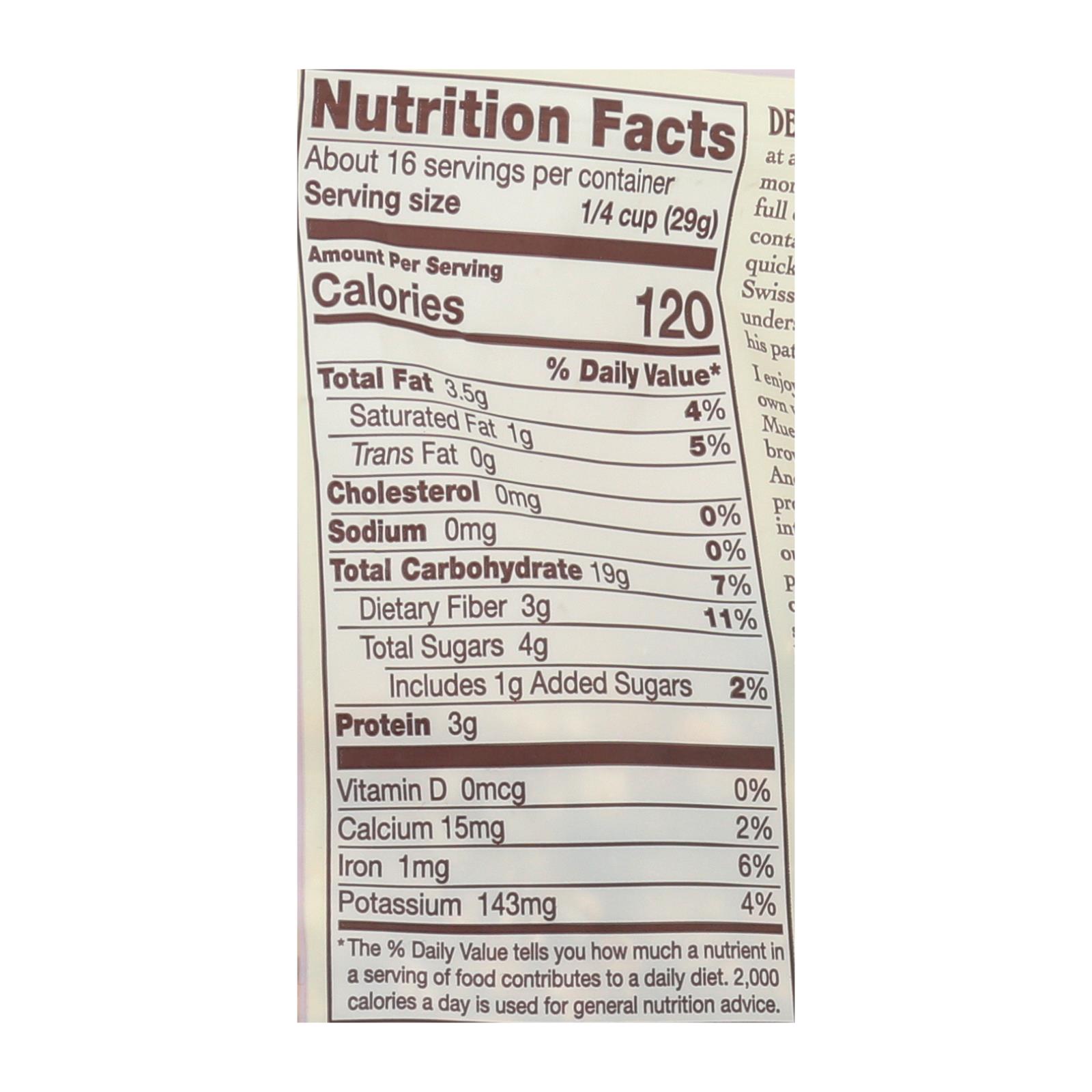 Bob’s Red Mill Gluten-Free Muesli offers a hearty blend of whole grains, seeds, and dried fruit in a convenient 4-pack of 16 oz bags