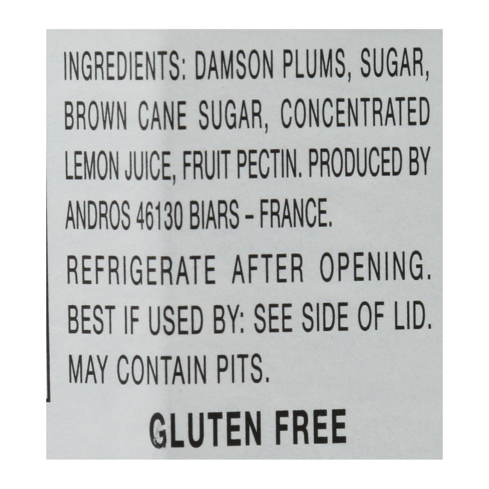 Damson plum, sugar, brown cane sugar, concentrated lemon juice, fruit pectin.