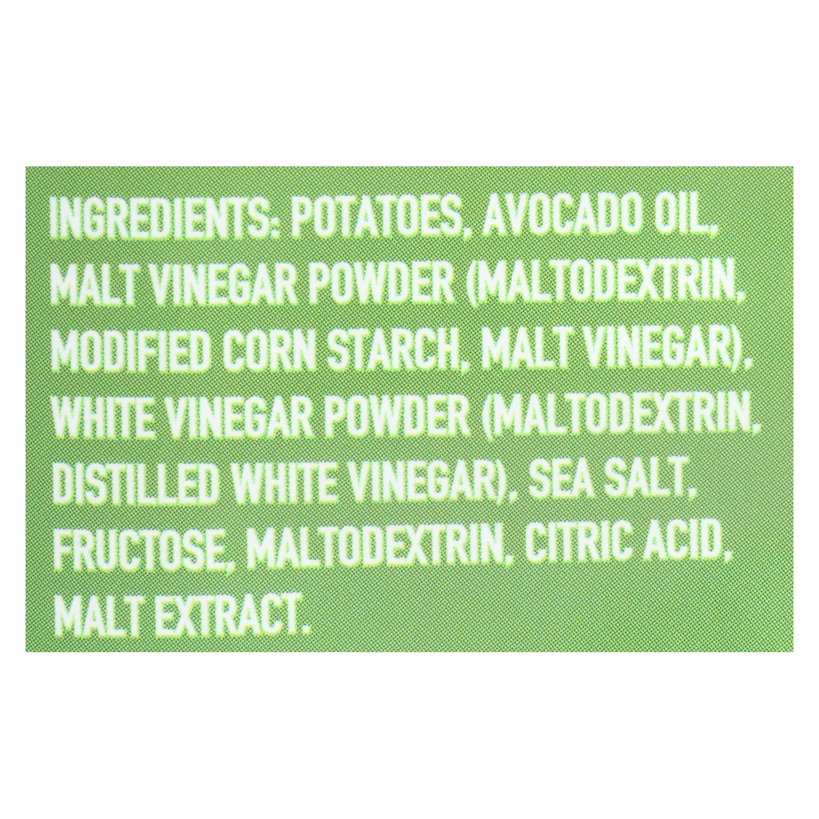 ingredients : potatoes;avocado oil;malt vinegar powder (maltodextrin, modified corn starch, malt vinegar);white vinegar powder (maltodextrin, distilled white vinegar);sea salt;fructose;maltodextrin;citric acid;malt extract