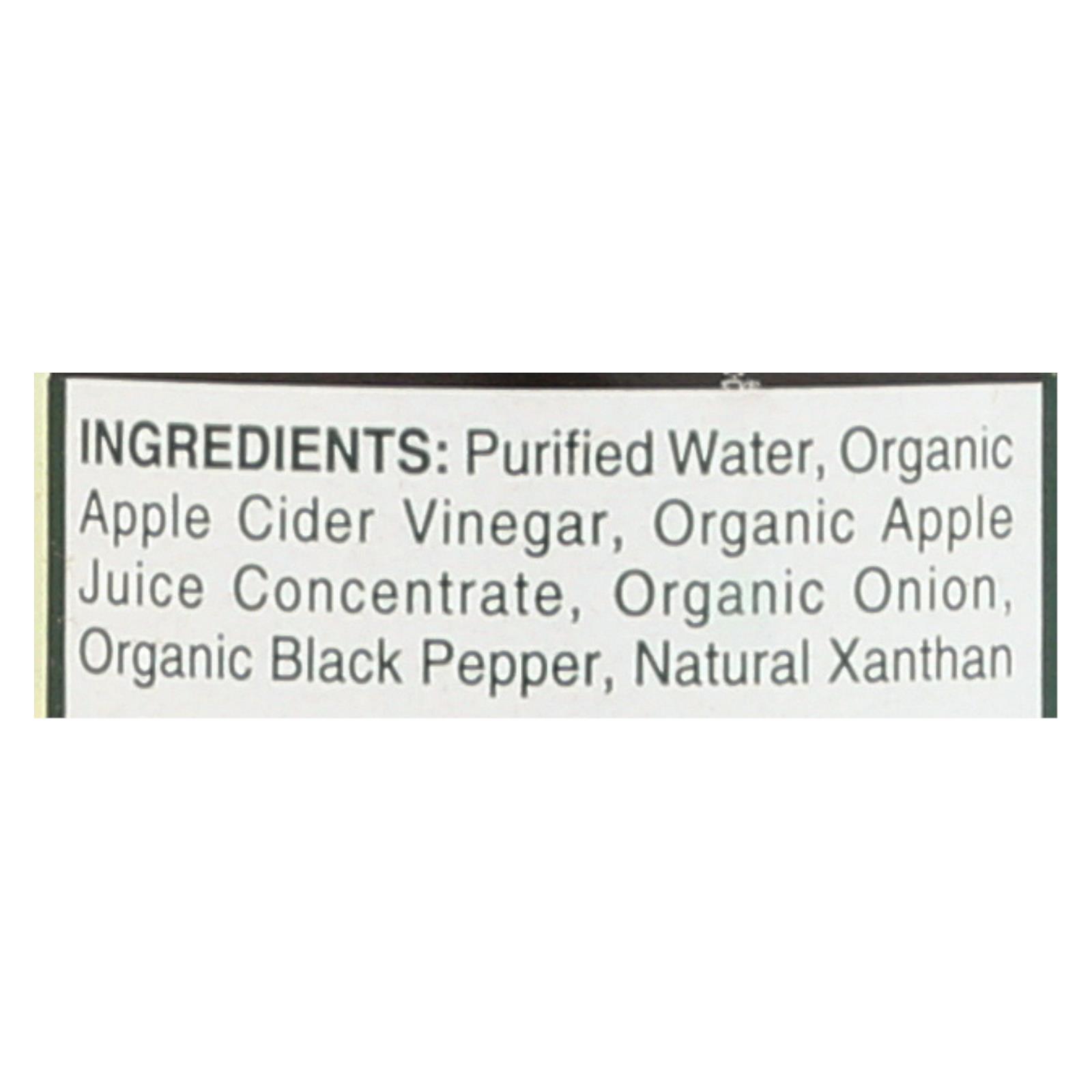 ingredients : water;organic apple cider vinegar;organic apple juice concentrate;organic dried onion;organic black pepper;xanthan gum