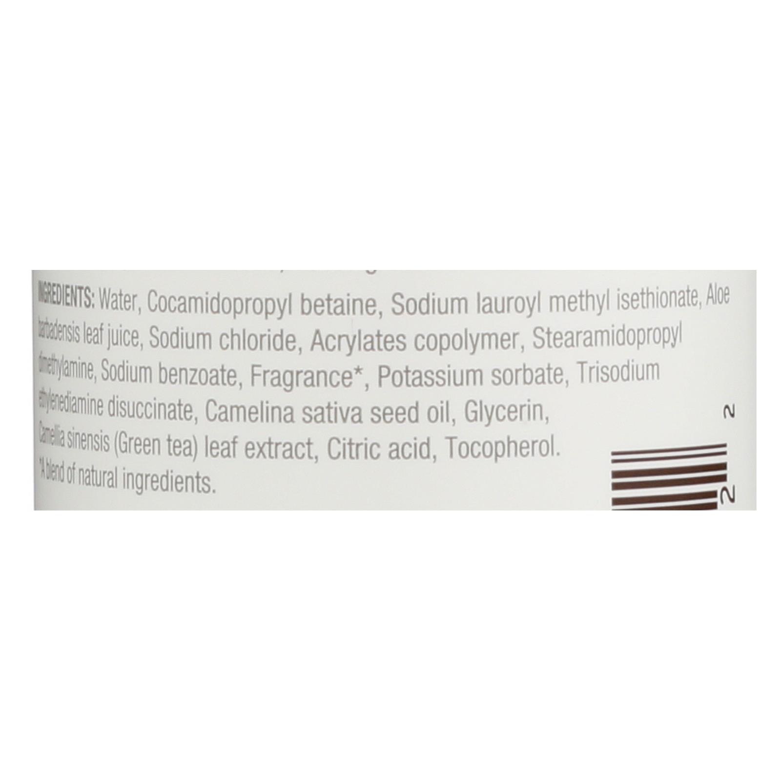 Water, cocamidopropyl betaine, sodium lauroyl methyl isethionate, aloe barbadensis leaf juice, sodium chloride, acrylates copolymer, stearamidopropyl dimethylamine, sodium benzoate, fragrance, potassium sorbate, trisodium ethylenediamine disuccinate, camelina sativa seed oil, glycerin, camellia sinensis (green tea) leaf extract, citric acid, tocopherol.