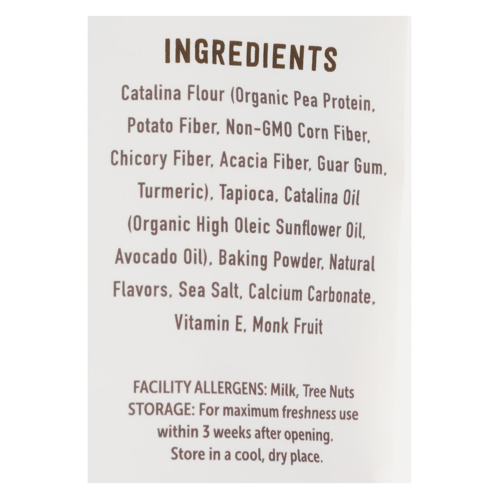 Catalina flour (pea protein, potato fiber, non-GMO corn fiber, chicory root fiber, guar gum), tapioca flour, high oleic sunflower oil, baking powder, natural flavors, calcium carbonate, stevia extract.