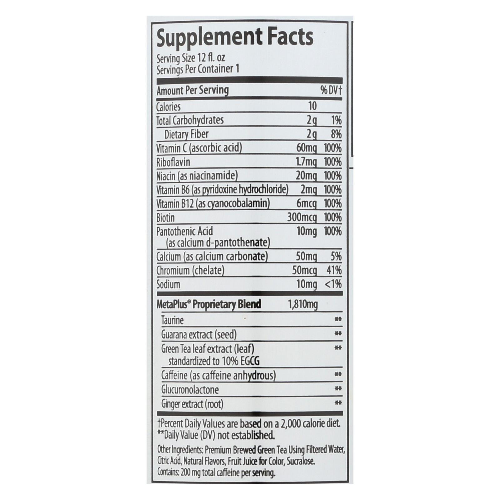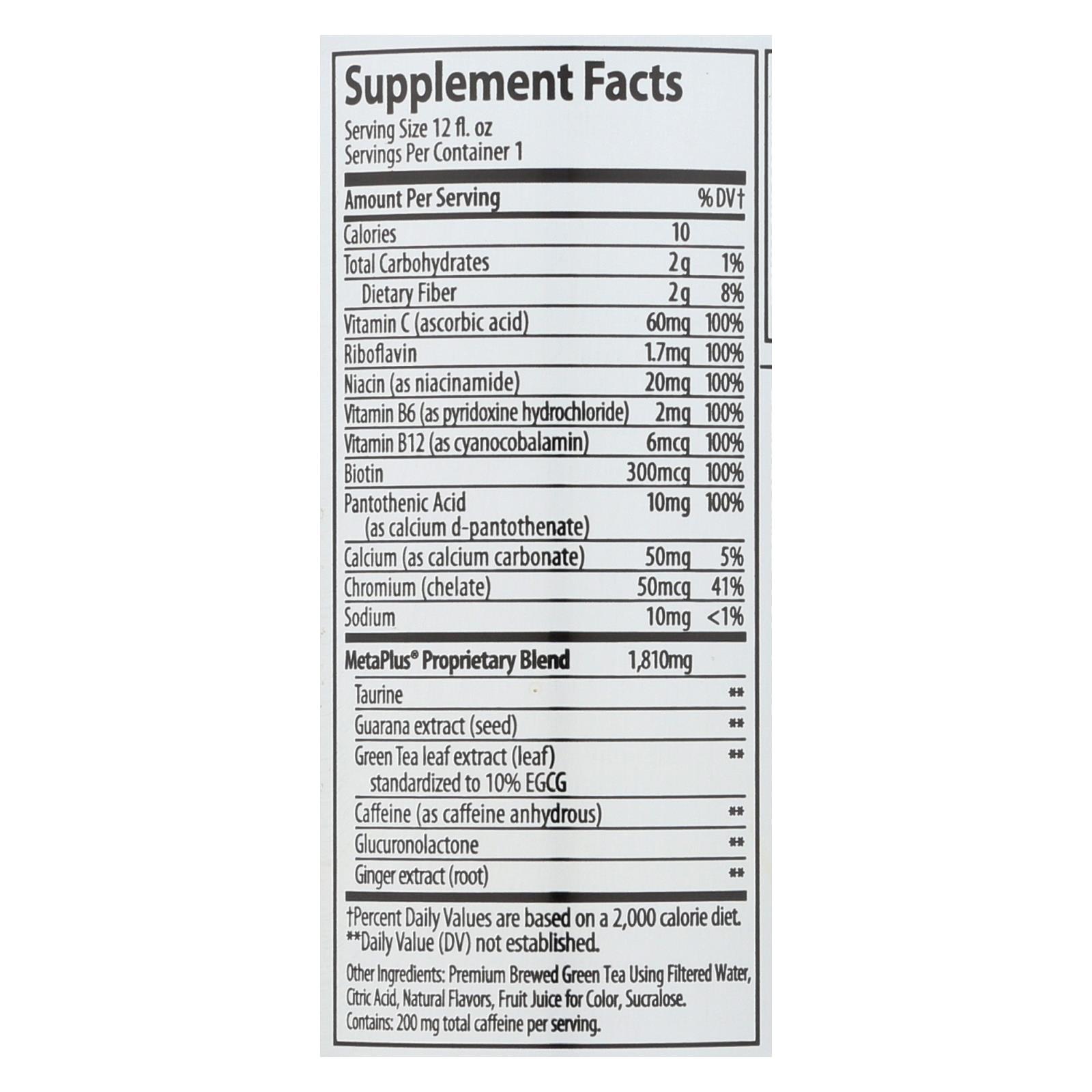This unique formula features a blend of vitamins, minerals, and plant extracts. Ginger and guarana seed are commonly used in herbal wellness for their energizing properties and support for a healthy metabolism. Enjoy the benefits of green tea, celebrated for its natural antioxidants and crisp taste.