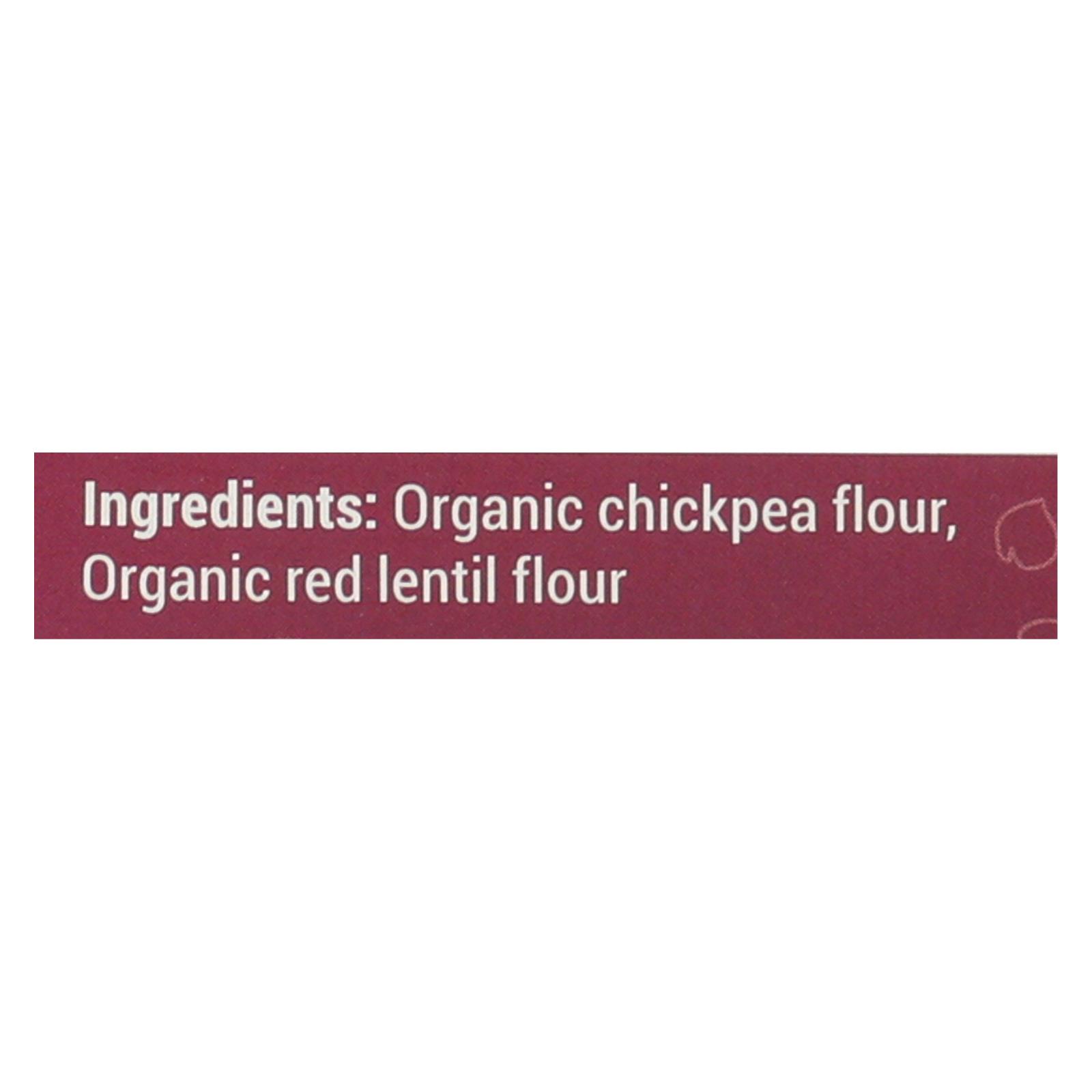 ingredients : organic chickpea flour;organic yellow lentil flour;organic red lentil flour