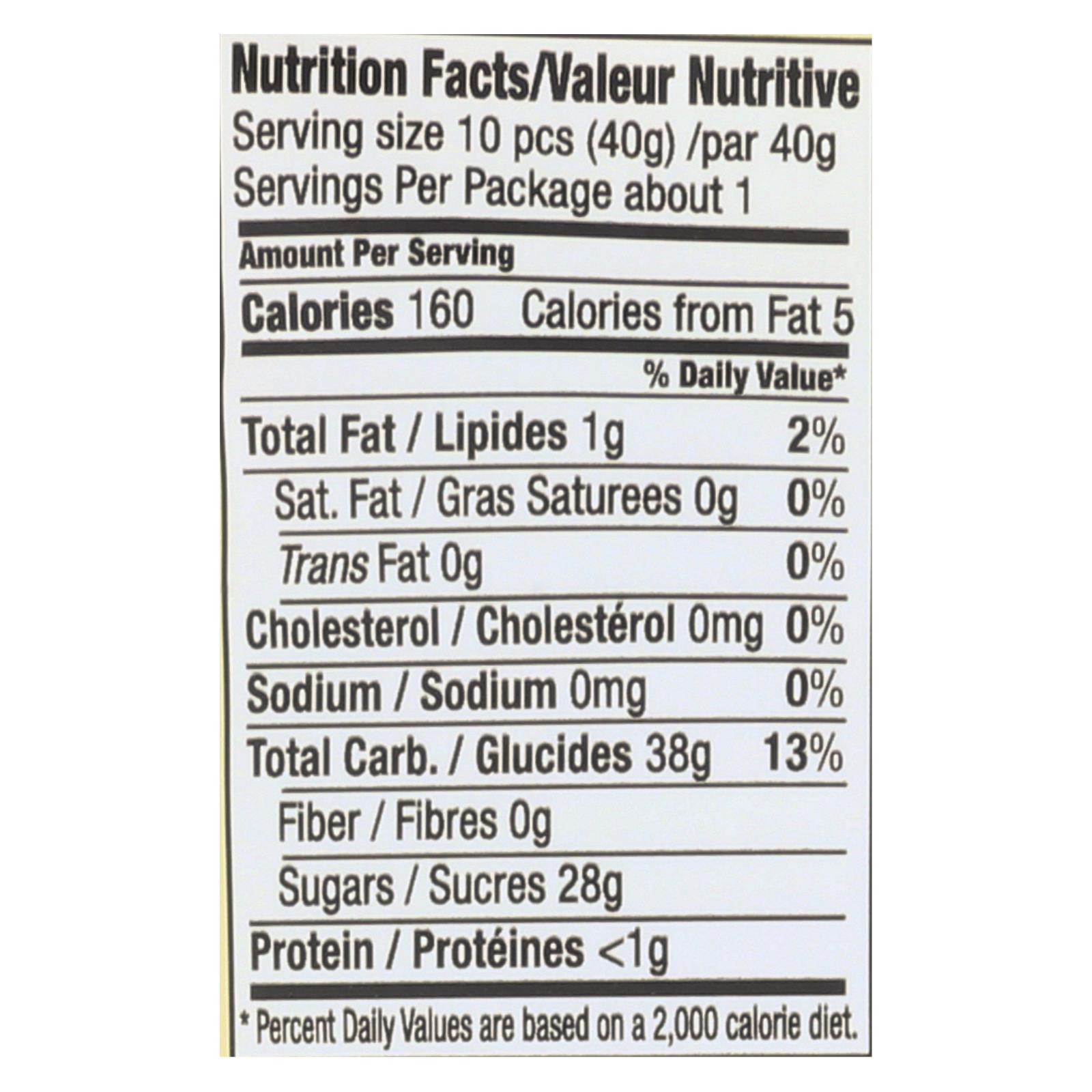 Chimes, ginger chew, original is a soothing and comforting treat. This product is a chewy candy and is individually wrapped to seal in freshness. It’s made with pure ginger, has no additives or preservatives and contains only 3 g. Sugar per piece in a 1.5 oz. Pouch. This product is manufactured in a facility that also processes peanuts and peanut oil. Please see nutritional facts panel for additional information about possible allergens and other warnings associated with chimes, ginger chew, original.