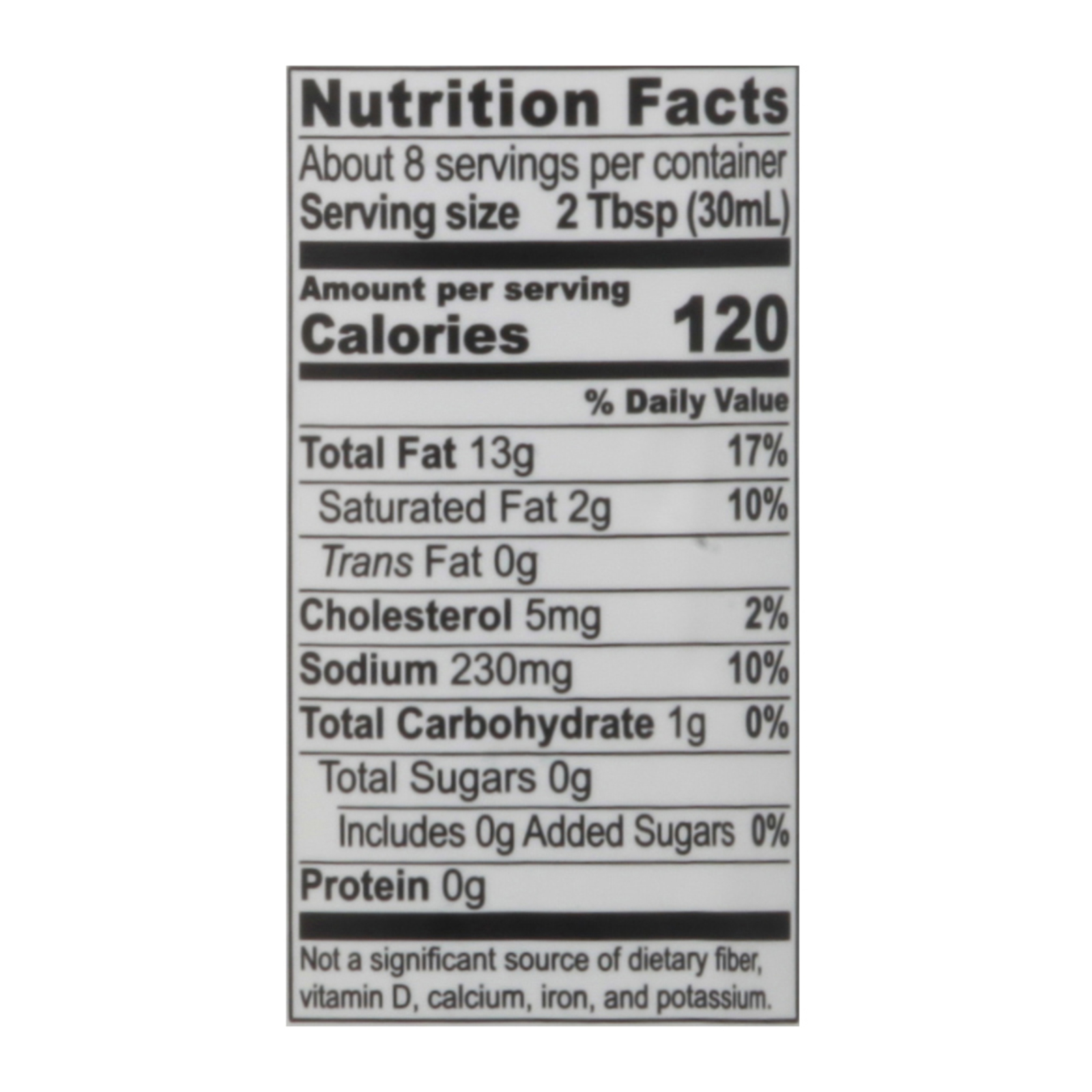 This dressing features avocado oil as its base, known for its richness in healthy fats that support overall wellness. Mustard, made from organic mustard seeds and turmeric, is commonly used in herbal wellness for its traditional antioxidant properties. Lemon juice concentrate and dried garlic add a zesty, savory depth, while rosemary extract is included for freshness. Every ingredient is thoughtfully chosen to deliver taste and quality you can trust.