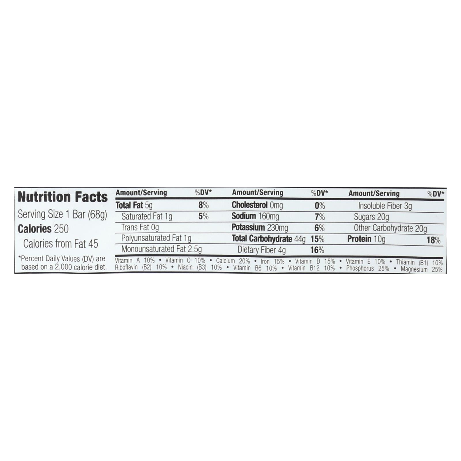 This bar features organic rolled oats and soy protein isolate for sustained energy, along with green tea extract-commonly used in wellness traditions for its natural caffeine content. A blend of essential vitamins and minerals, including iron, calcium, potassium, and vitamins A, B6, B12, C, D, and E, helps support your daily nutrition needs.