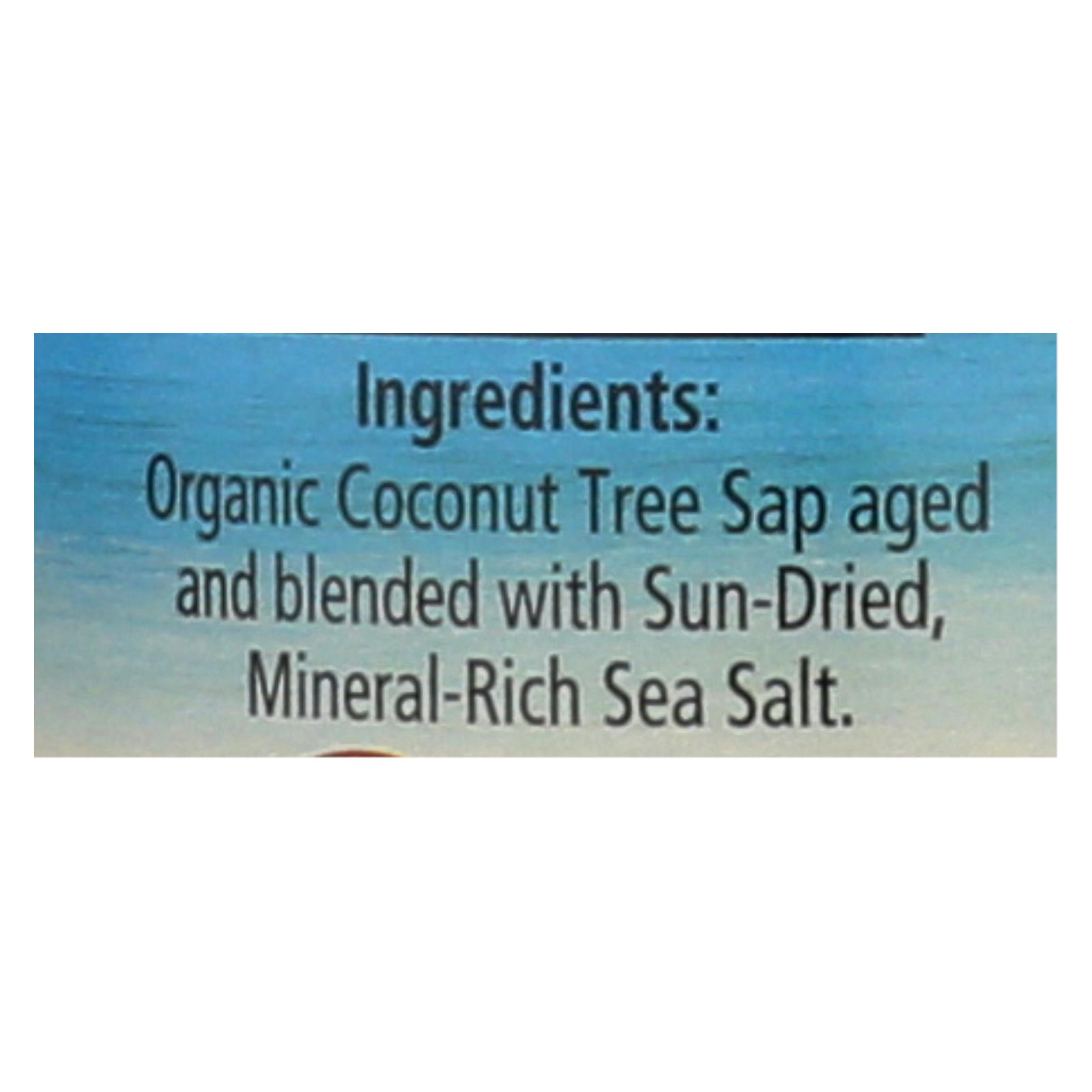 Organic coconut tree sap aged and blended with sun-dried, mineral-rich sea salt.