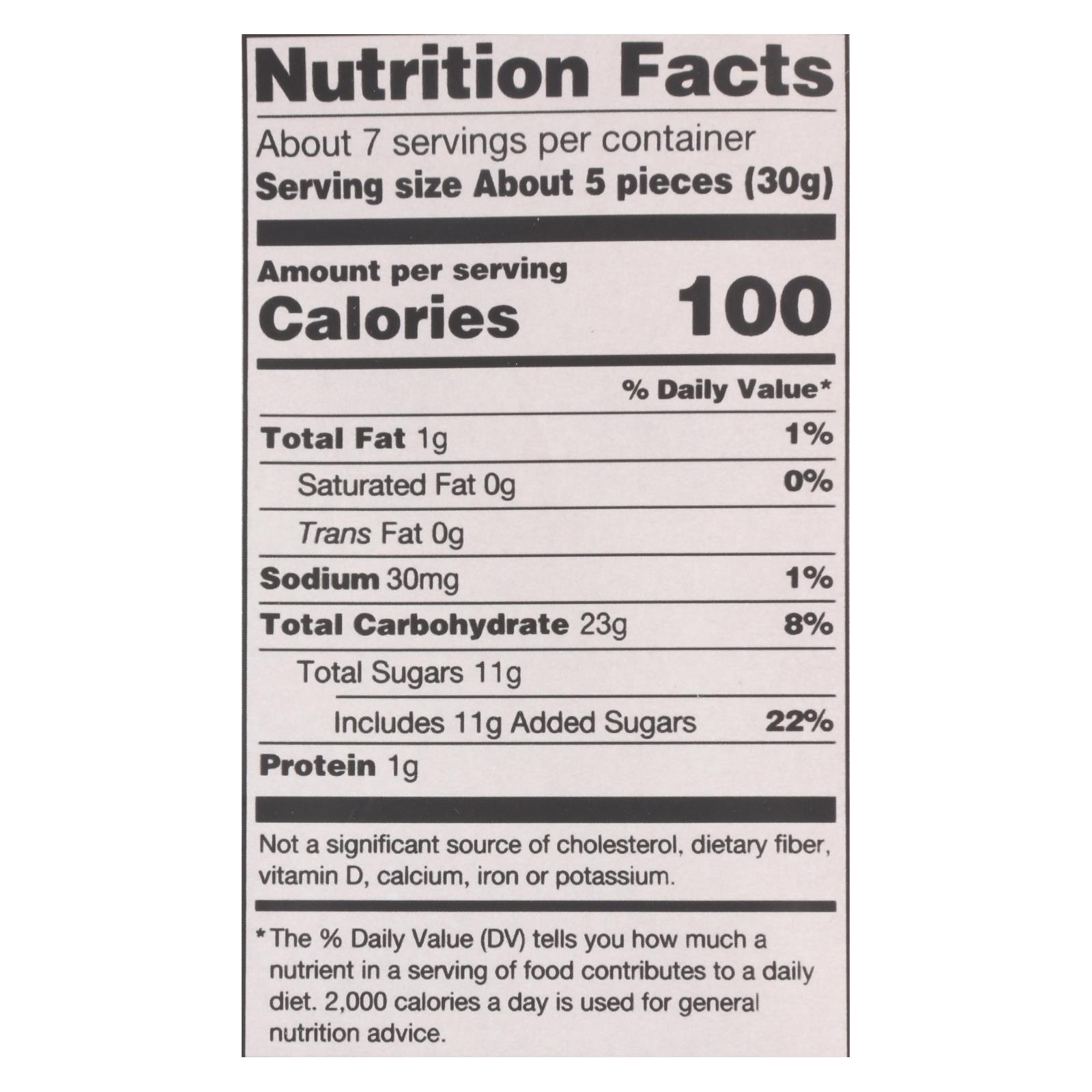 Licorice extract, a key ingredient, is commonly used in herbal wellness for its naturally sweet flavor and traditional use in confections. This blend features natural flavors like strawberry, green apple, and mango, colored with plant-based ingredients such as black carrot powder, beta carotene, turmeric, and anthocyanin. Each bite is a celebration of real, recognizable ingredients.