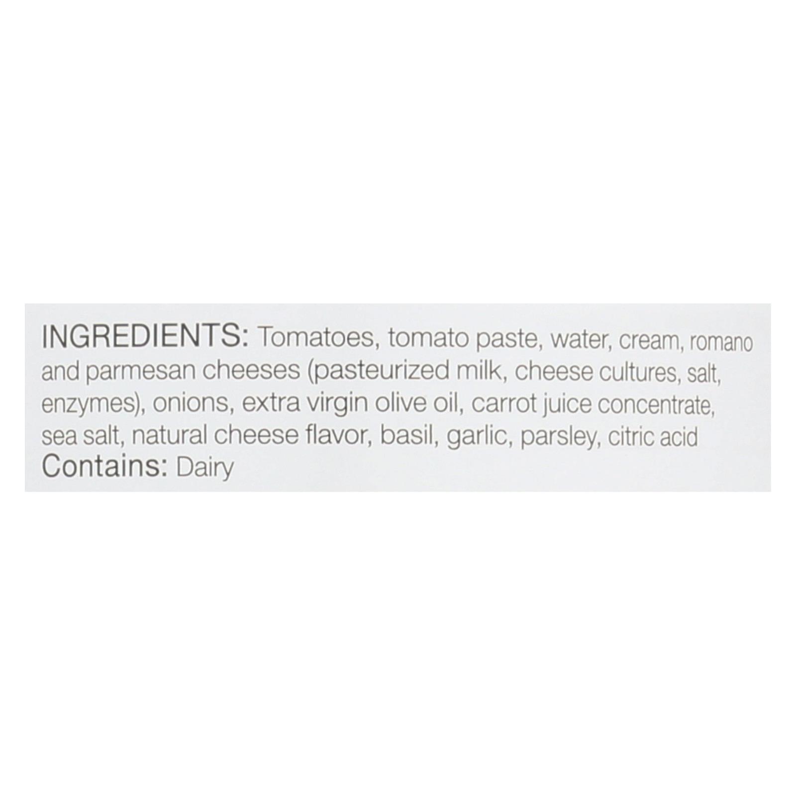 Dave’s Gourmet Creamy Parmesan Romano Pasta Sauce is a gluten-free, rich blend of aged cheeses and ripe California tomatoes, sold in a case of six 24 oz jars