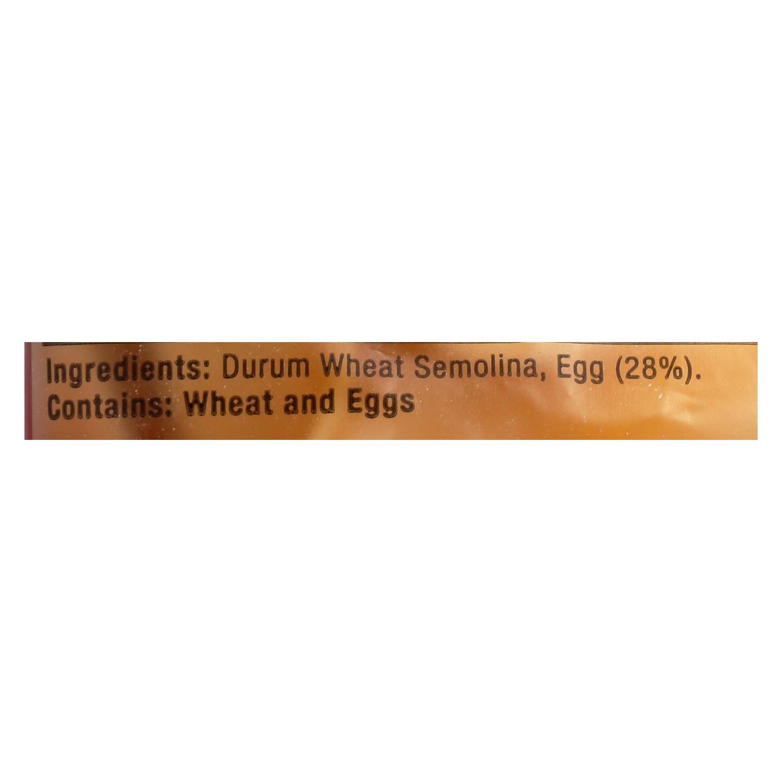 Delallo Pappardelle Egg Pasta from Italy, kosher and yeast-free, comes in a convenient case of 12 packs, each 8.82 oz of rich durum wheat semolina pasta