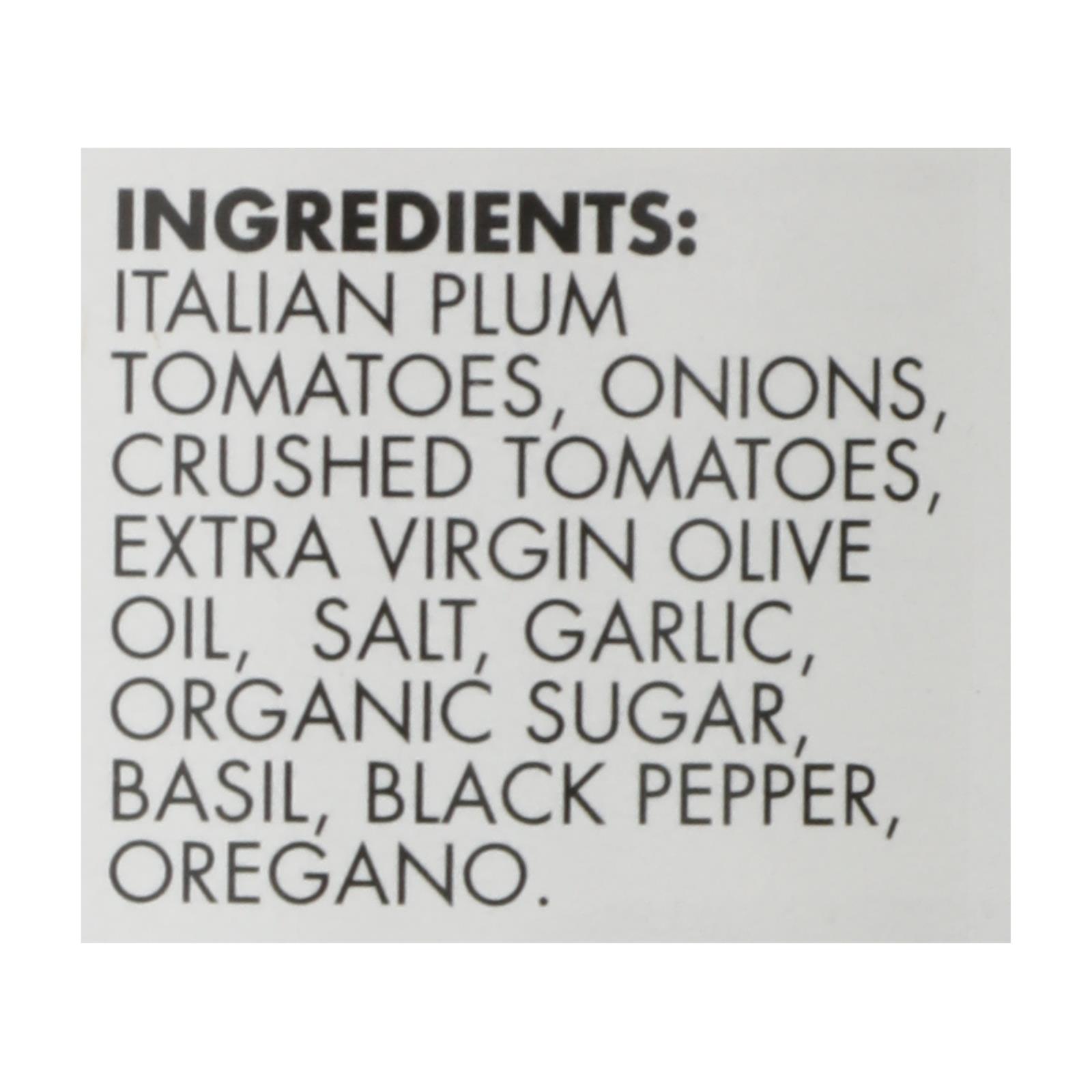 ingredients : italian plum tomatoes;onions;crushed tomatoes;extra virgin olive oil;salt;garlic;organic sugar;basil;black pepper;oregano