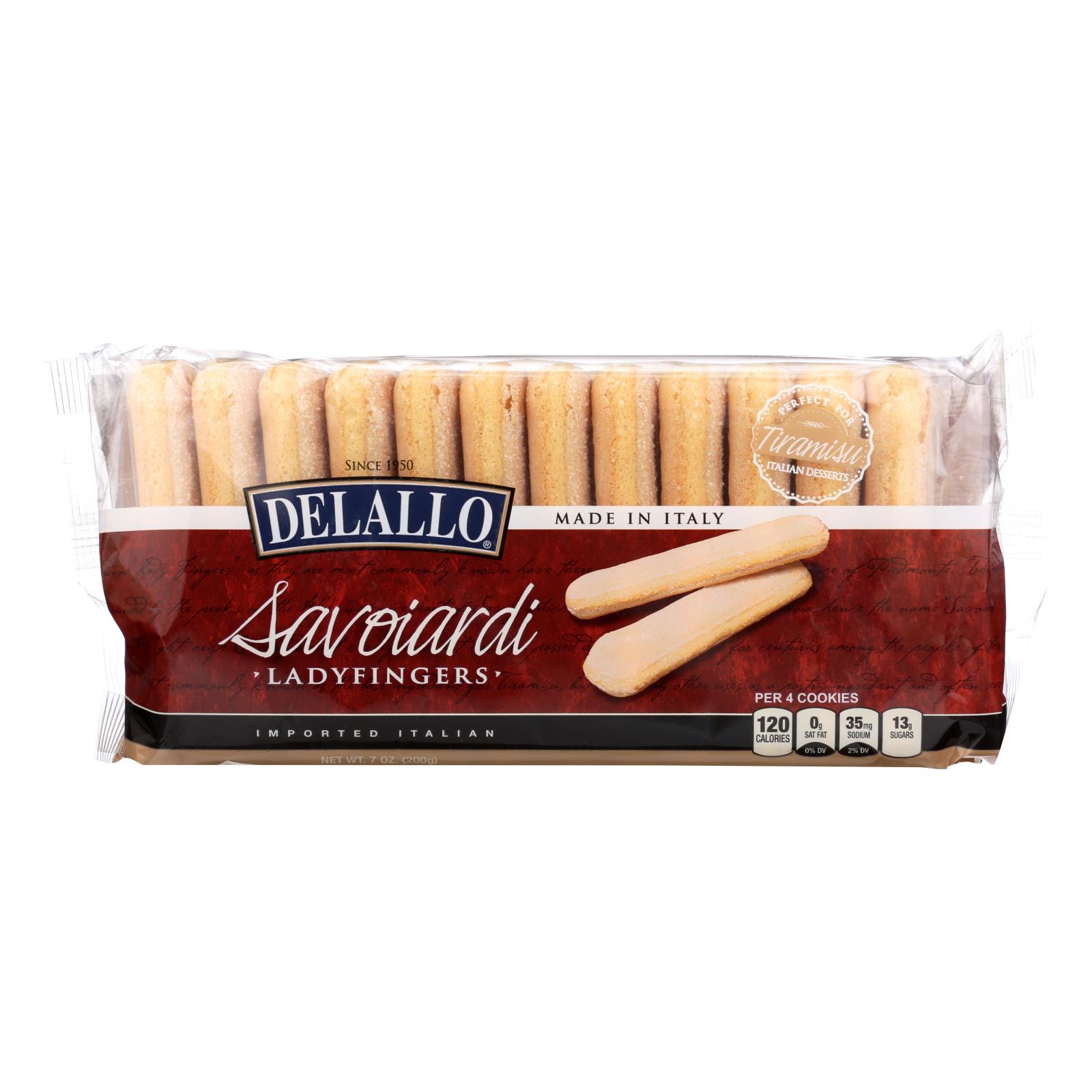 Delallo Savoiardi Ladyfingers are dairy and yeast free Italian cookies, perfect for desserts, sold in a convenient 15-pack case of 7.06 oz each