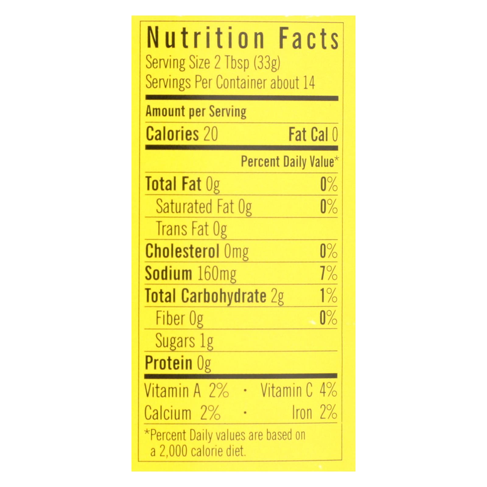 - Serving size: 2 tbsp. (14 servings per 16 oz. container)