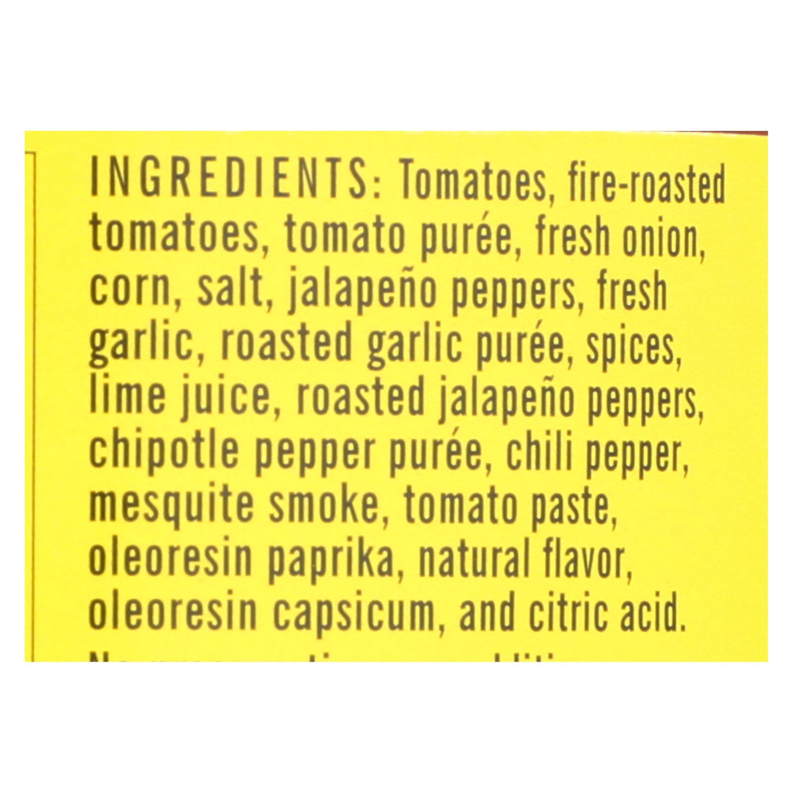 This vibrant salsa features roasted tomatoes, chipotle peppers, and sweet corn, blended with savory spices. Tomatoes and peppers are commonly enjoyed for their naturally occurring antioxidants and have been traditionally used in culinary wellness for their rich, satisfying flavors.