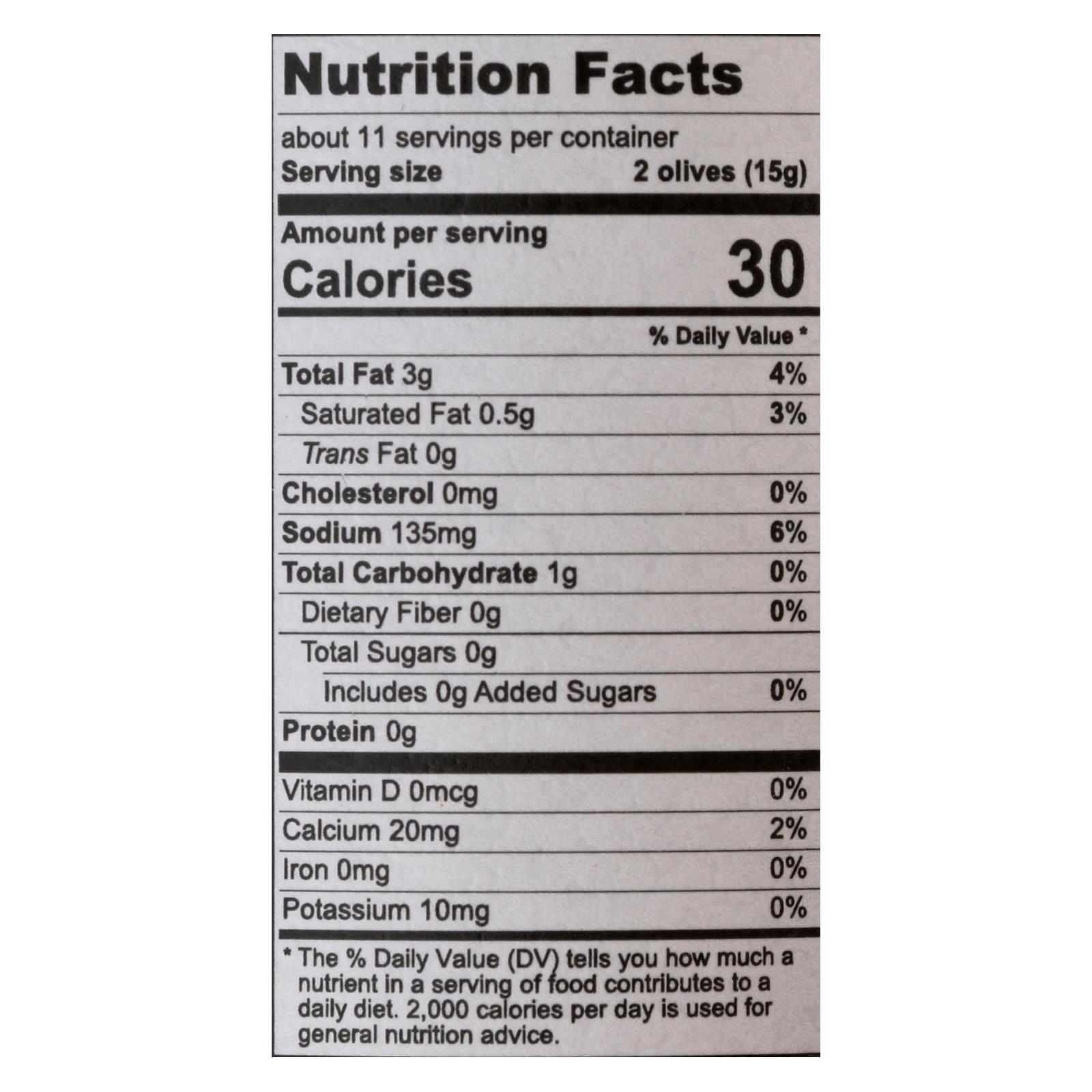 - Each case contains 6 jars, each with 6 oz of olives