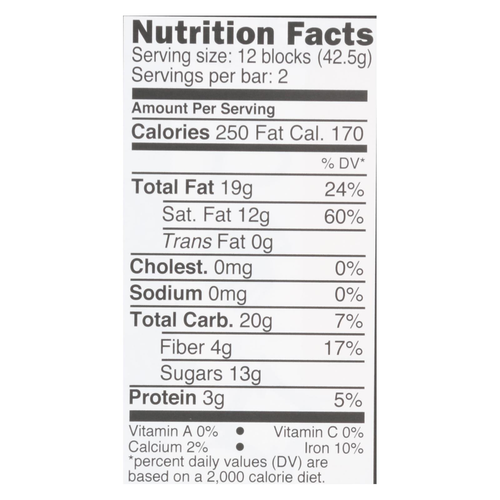 - Product form: Solid chocolate bar