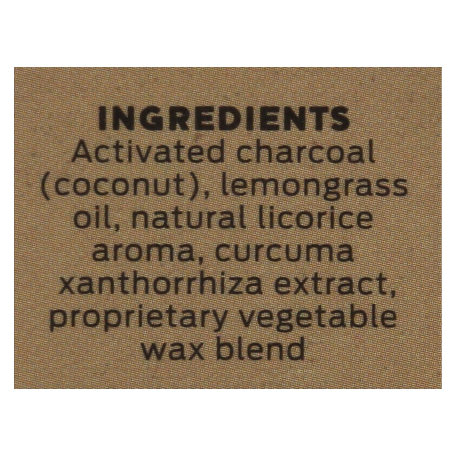 ingredients : activated charcoal;coconut;lemongrass oil;natural licorice aroma;curcuma xanthorrhiza extract;proprietary vegetable;wax blend