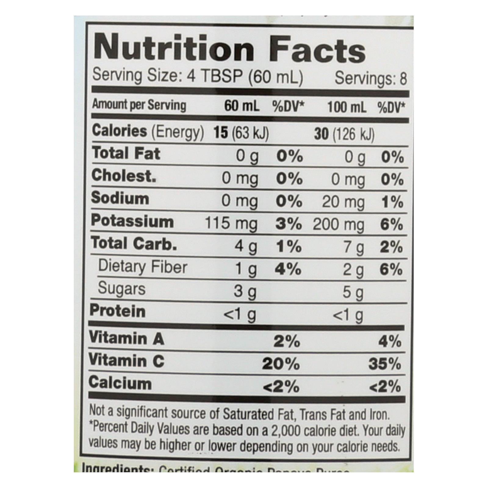 Dynamic Health Organic Papaya Puree is 95% organic, fat-free, and gluten-free, perfect for smoothies, drinks, or recipes in a convenient 16 fl oz bottle