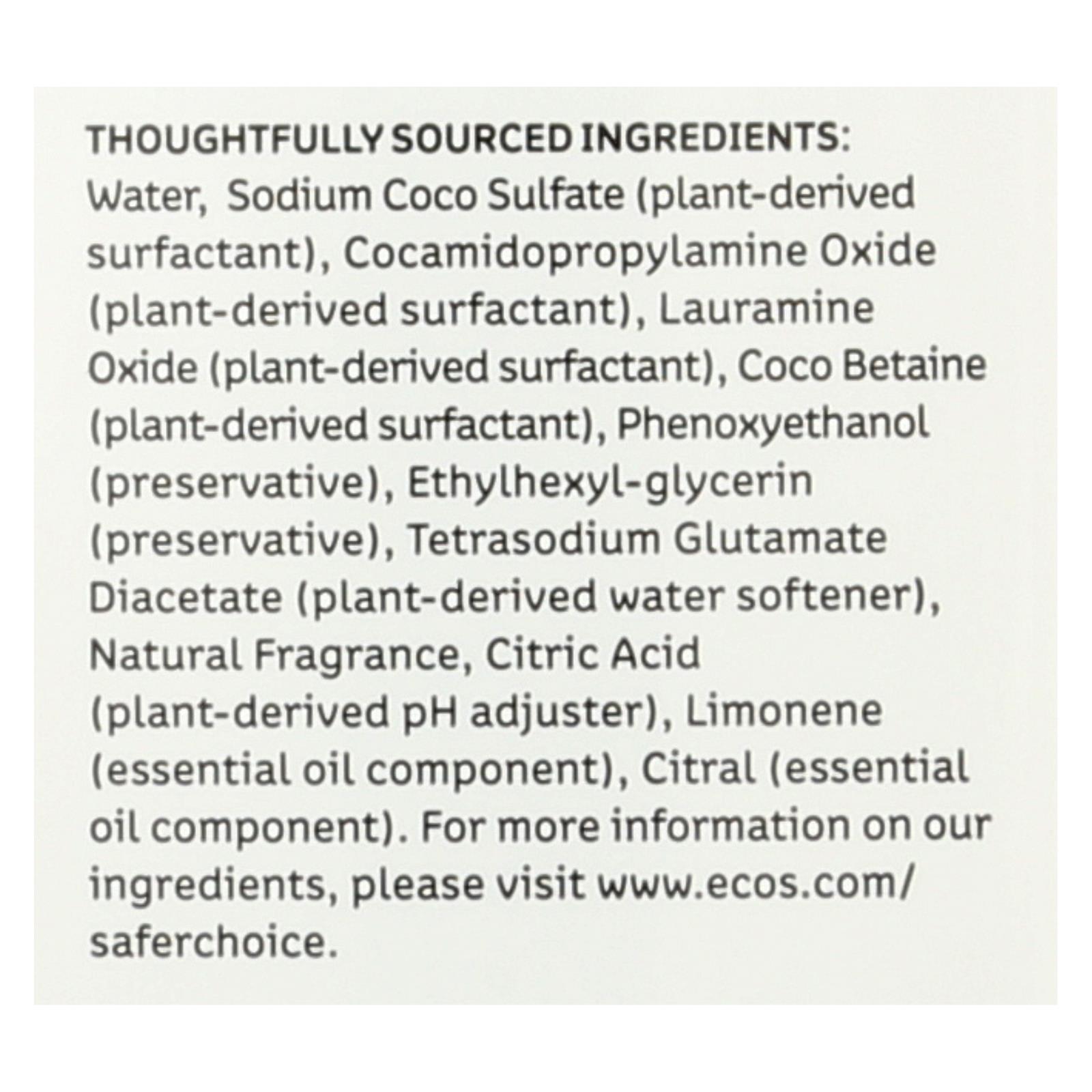 Ecos dish soap, free & clear cuts grease and loves hands. Our formula is extraordinarily effective at cleaning dishes while softening hands. It’s positively free of formaldehyde and dyes, and it’s hypoallergenic, readily biodegradable, ph-balanced and never tested on animals. Manufactured using zero waste guidelines, this soap is made in family-owned and operated plants powered by 100% renewable energy. Wash your dishes with plant-derived goodness for a purely powerful clean. Each bottle contains 25 fl. Oz. Of soap. See the facts label for allergens and warnings.