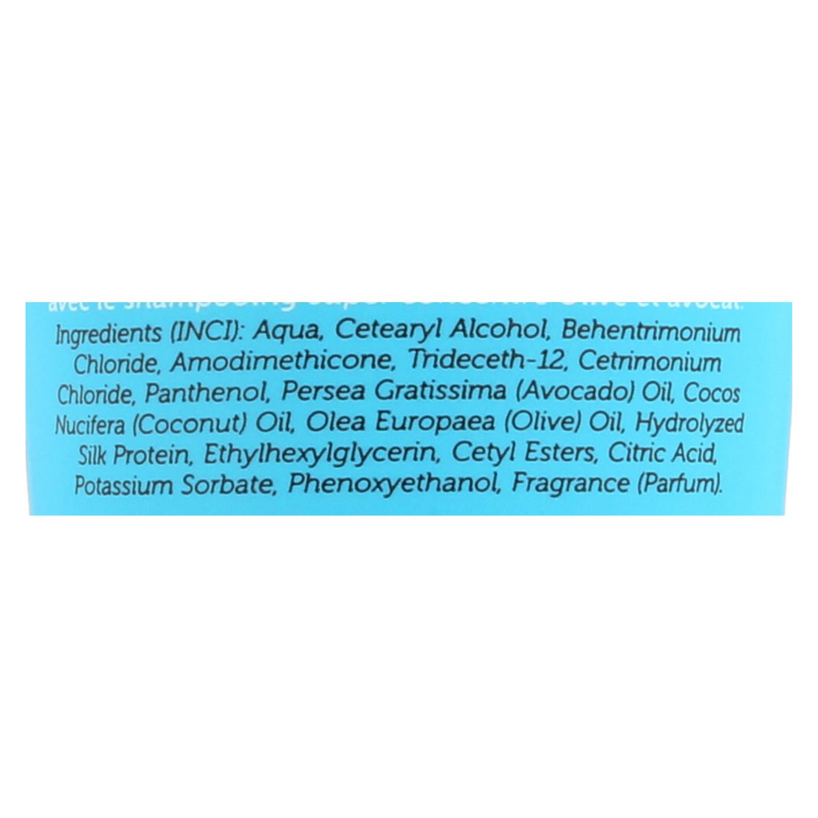 ingredients : inci;: aqua;cetearyl alcohol;behentrimonium chloride;amodimethicone;trideceth-12;cetrimonium chloride;panthenol;persea gratissima;avocado;oil;cocos nucifera;coconut;olea europaea;olive;hydrolyzed silk protein;ethylhexylglycerin;cetyl esters;citric acid;potassium sorbate;phenoxyethanol;fragrance;parfum