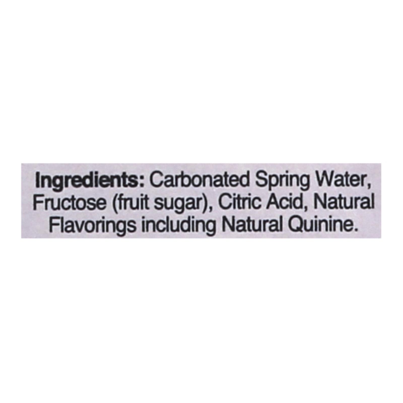 ingredients : carbonated spring water;fructose (fruit sugar);citric acid;natural flavorings including natural quinine