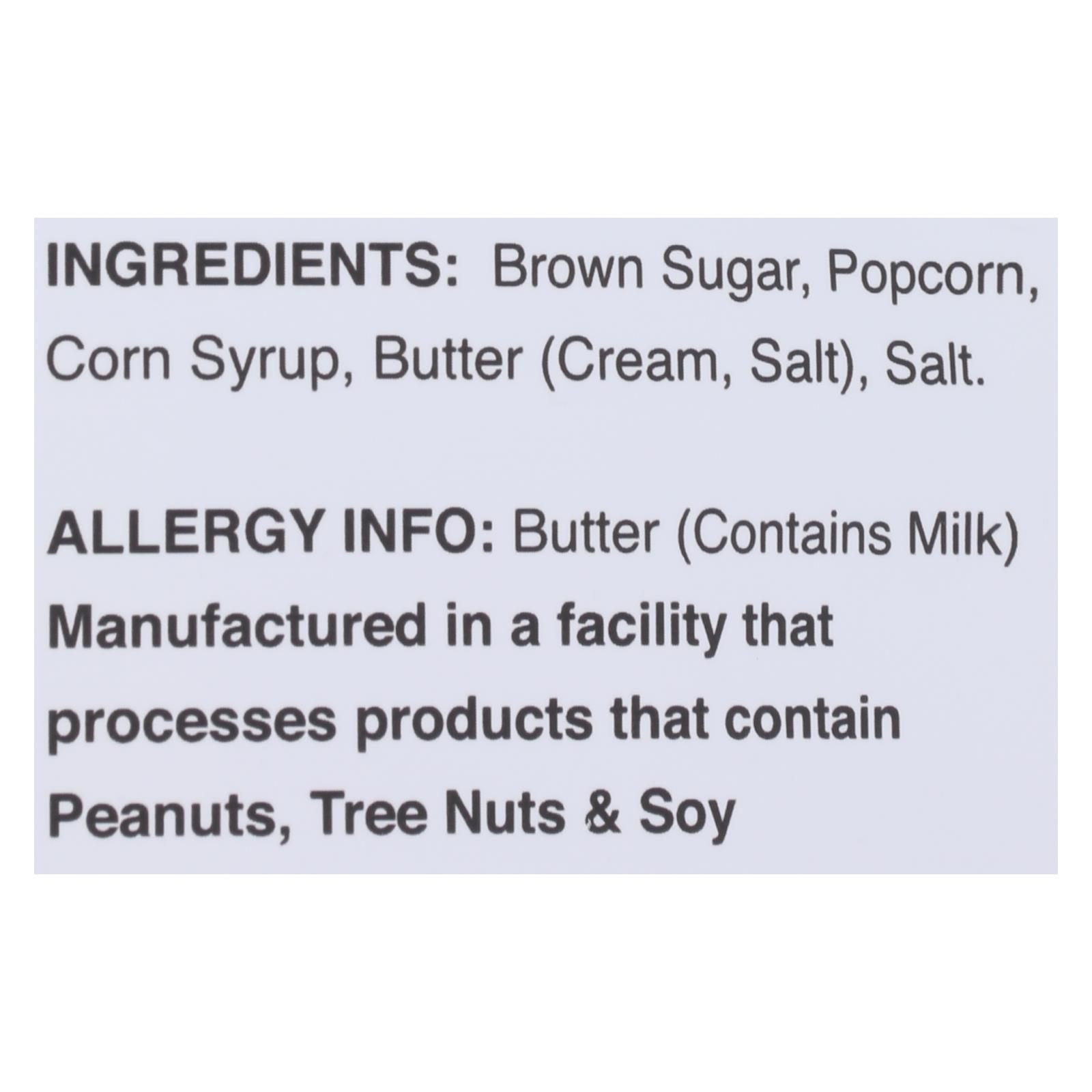 This caramel popcorn features just five simple ingredients: fresh air-popped popcorn, cane brown sugar, butter, salt, and non-GMO corn syrup. Each batch is hand-mixed in copper kettles, honoring a family recipe that has stood the test of time. No artificial preservatives are used, so you can enjoy a snack that’s as close to nature as possible.