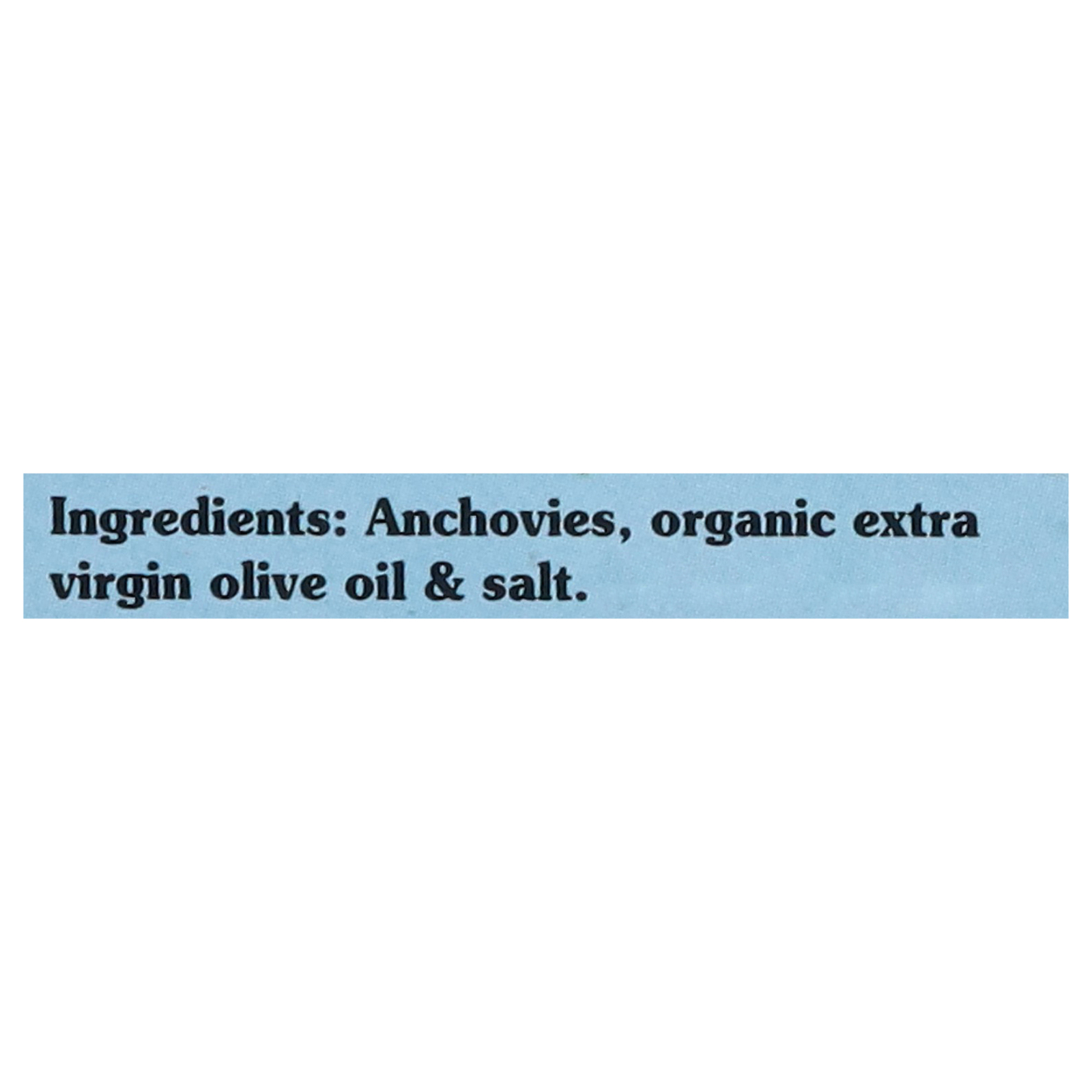 Anchovies, organic extra virgin olive oil, salt