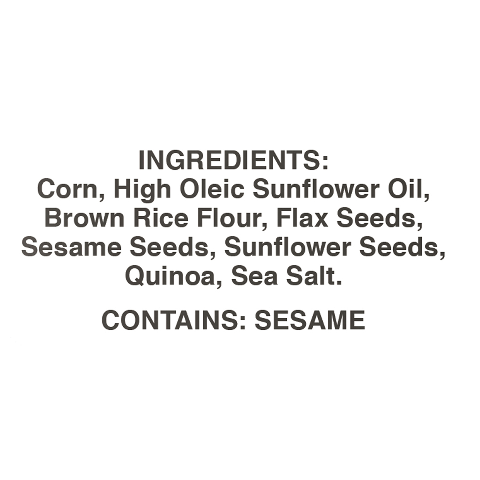 Made with a thoughtful blend of corn, brown rice flour, flax seeds, sesame seeds, sunflower seeds, and quinoa, these chips offer a satisfying crunch and a rich, nutty taste. Flax seeds and sunflower seeds are commonly used in wellness traditions for their natural nutrient content, while quinoa is celebrated for its plant-based goodness.