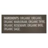 ingredients : organic oregano;organic marjoram;organic thyme;organic rosemary;organic basil;organic sage