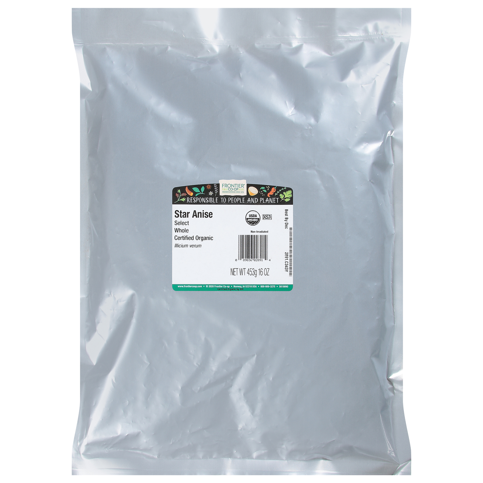 Frontier Herb Star Anise Whole is a 16 oz kosher, 95%+ organic spice grown in the USA, perfect for adding bold flavor to your dishes