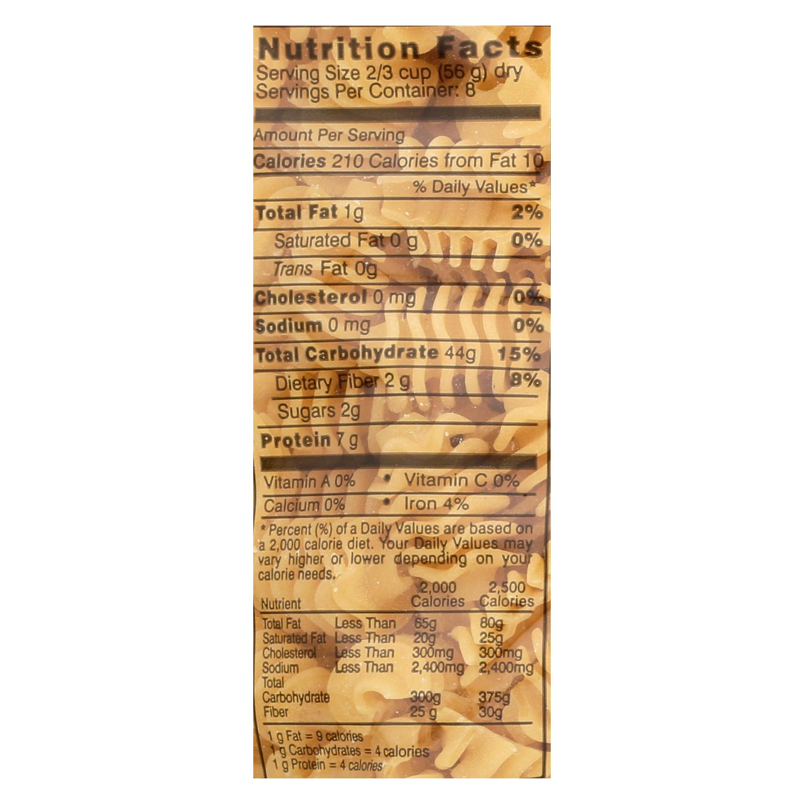 Made from 100% durum wheat semolina, this pasta is known for its robust flavor and satisfying protein content. Durum wheat semolina is commonly chosen for its hearty texture and ability to hold sauces beautifully, making it a staple in traditional Italian cuisine.