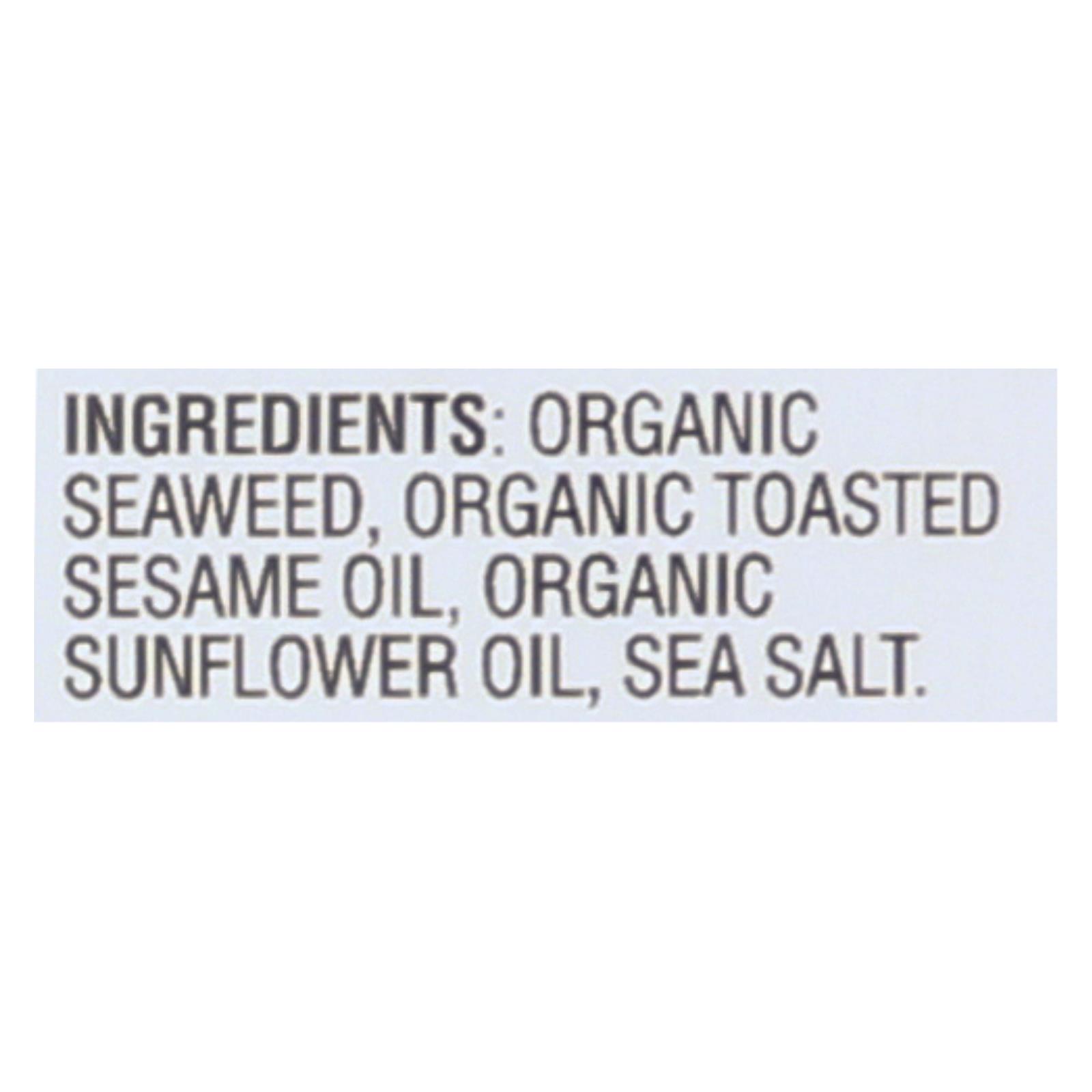 Organic seaweed, organic toasted sesame oil, organic sunflower oil, sea salt.